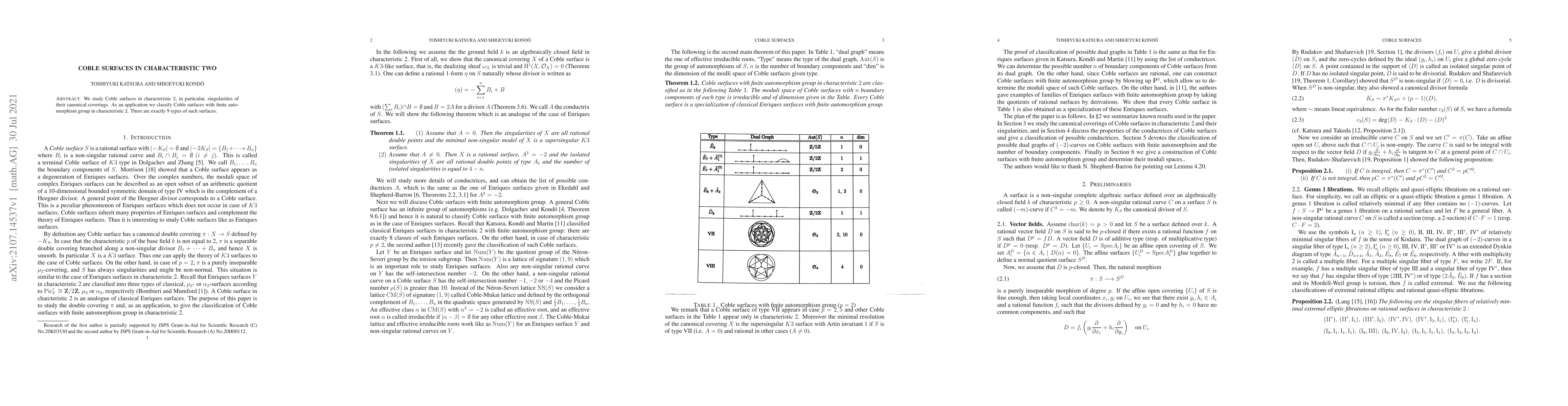 Summary: This paper investigates Coble surfaces in characteristic two, focusing on the singularities of their canonical coverings and classifying Coble surfaces with finite automorphism groups, revealing exactly nine distinct types in this setting.