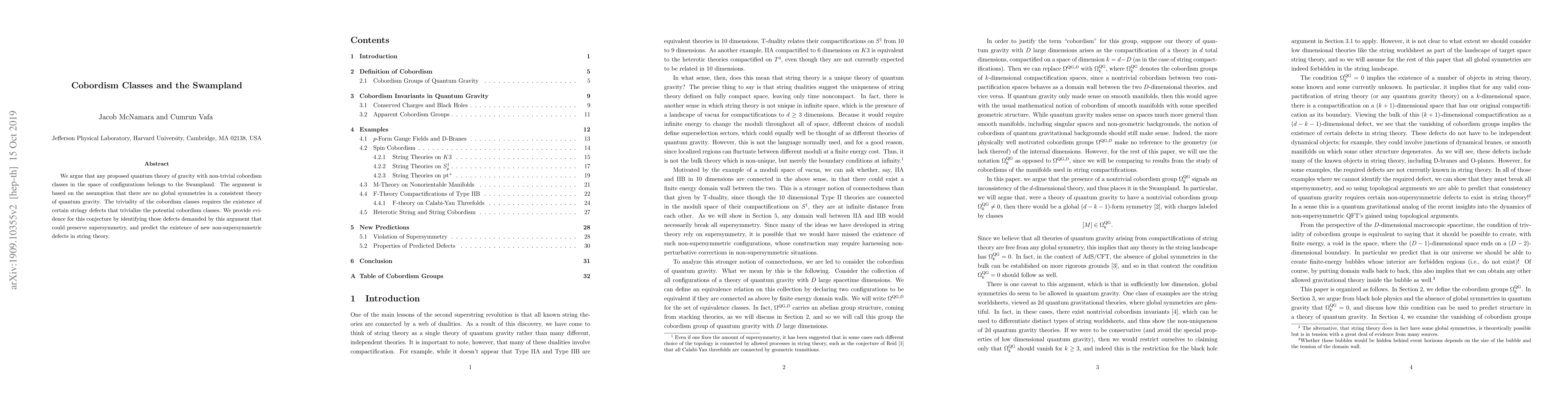 We argue that any proposed quantum theory of gravity with non-trivial cobordism classes in the space of configurations belongs to the Swampland. The argument is based on the assumption that there are no global symmetries in a consistent theory of quantum gravity. The triviality of the cobordism classes requires the existence of certain stringy defects that trivialize the potential cobordism classes. We provide evidence for this conjecture by identifying those defects demanded by this argument that could preserve supersymmetry, and predict the existence of new non-supersymmetric defects in string theory.