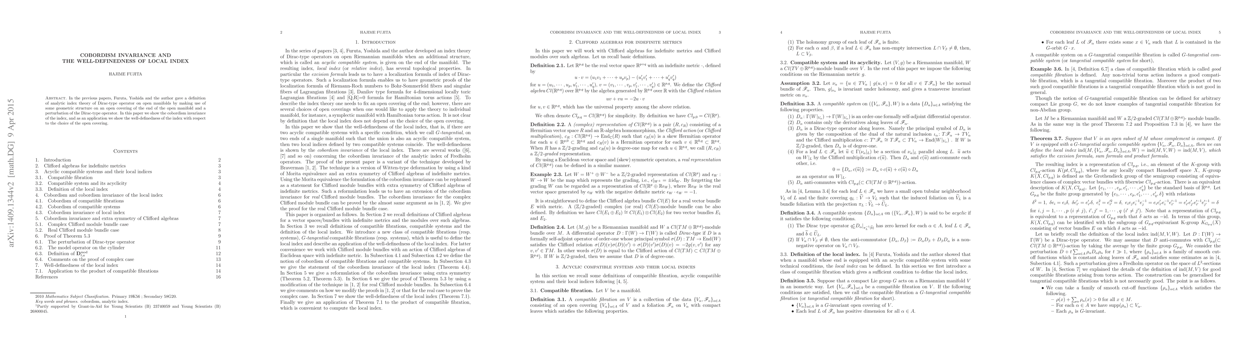 Summary: This paper demonstrates the cobordism invariance of the index defined for Dirac-type operators on open manifolds, thereby confirming the well-definedness of this index regardless of the specific open covering used. The results extend previous work on analytic index theory on such manifolds.
