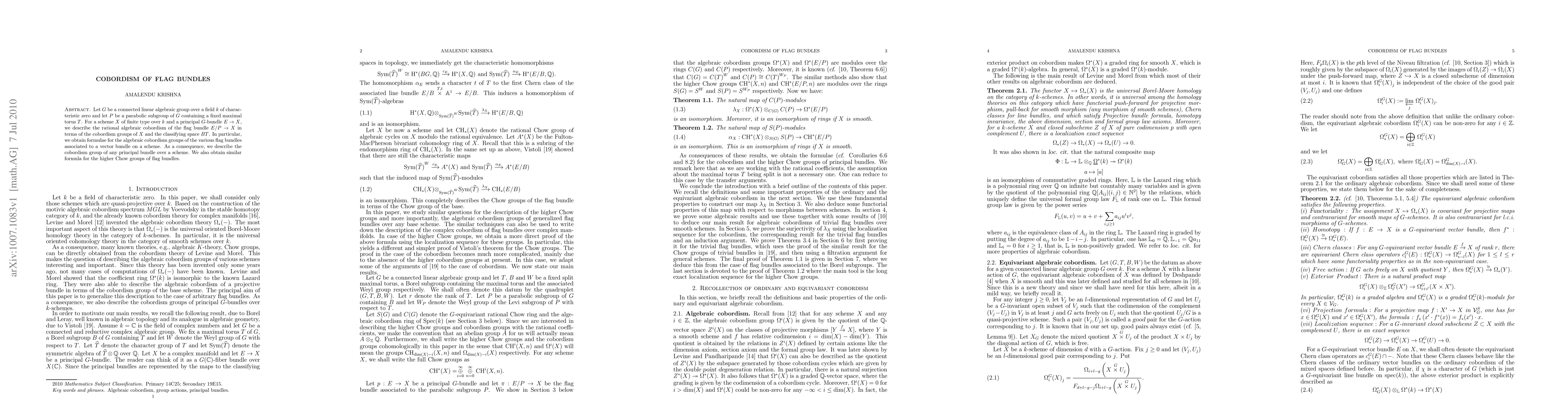 This paper explores the rational algebraic cobordism and higher Chow groups for flag bundles associated with principal $G$-bundles, linking them to the cobordism of the base scheme $X$ and the classifying space of a maximal torus contained in a parabolic subgroup $P$ of $G$. It provides a formula for the cobordism and higher Chow groups of these principal bundles.