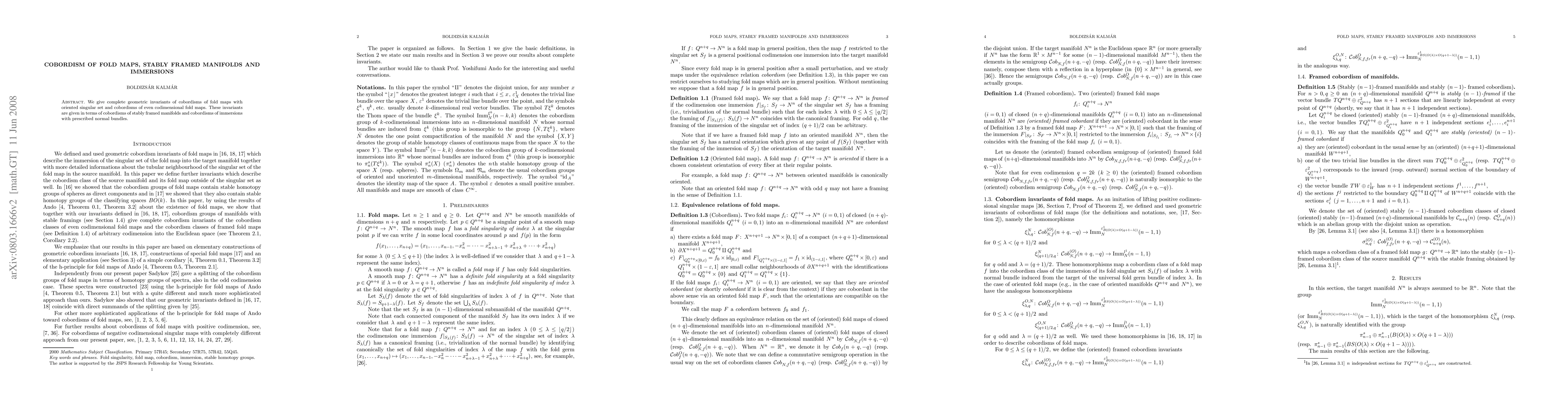 Summary: This paper presents geometric invariants for cobordisms of fold maps and related structures, expressed in terms of cobordisms of stably framed manifolds and immersions, building on the author's previous definitions and frameworks.