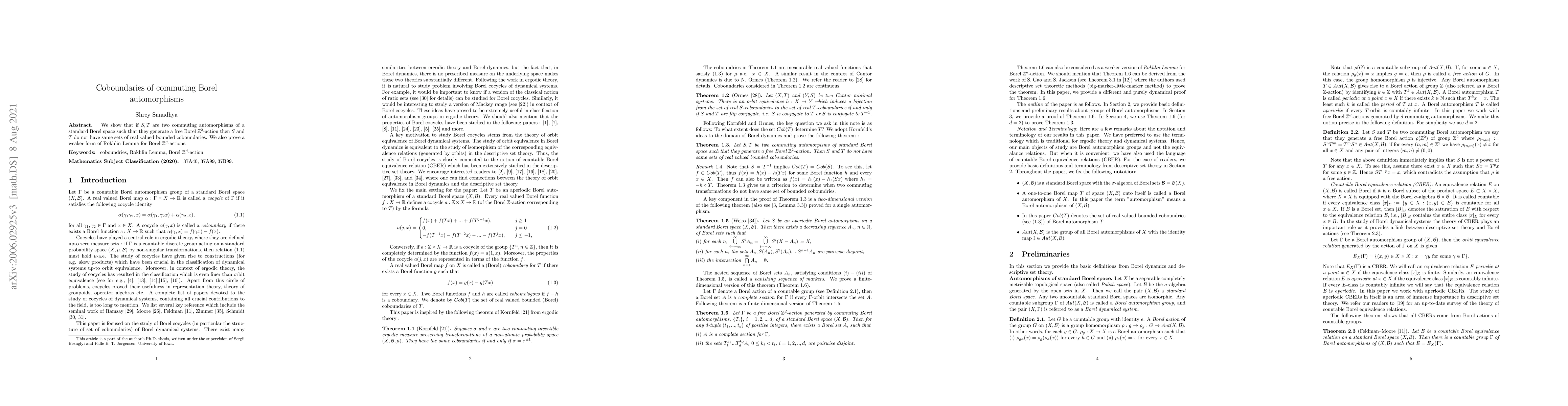 We show that if $S,T$ are two commuting automorphisms of standard Borel space such that they generate a free Borel $\Z^2$-action then $S$ and $T$ do not have same sets of real valued bounded coboundaries. We also prove a weaker form of Rokhlin Lemma for Borel $\Z^d$-actions.
