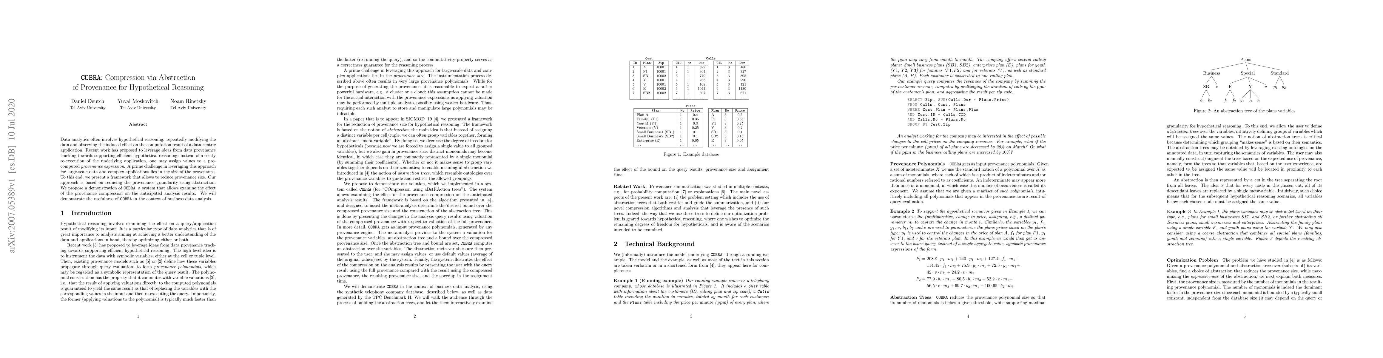 Data analytics often involves hypothetical reasoning: repeatedly modifying the data and observing the induced effect on the computation result of a data-centric application. Recent work has proposed to leverage ideas from data provenance tracking towards supporting efficient hypothetical reasoning: instead of a costly re-execution of the underlying application, one may assign values to a pre-computed provenance expression. A prime challenge in leveraging this approach for large-scale data and complex applications lies in the size of the provenance. To this end, we present a framework that allows to reduce provenance size. Our approach is based on reducing the provenance granularity using abstraction. We propose a demonstration of COBRA, a system that allows examine the effect of the provenance compression on the anticipated analysis results. We will demonstrate the usefulness of COBRA in the context of business data analysis.