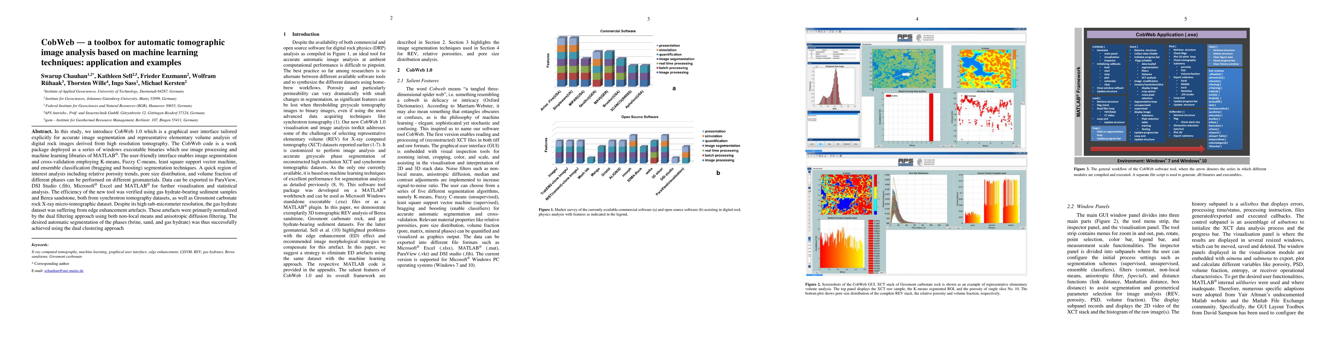 A new tool called CobWeb was developed to analyze digital rock images from high-resolution tomography using machine learning techniques. It successfully segmented phases in gas hydrate-bearing sediment samples and Berea sandstone with improved results after addressing edge enhancement artefacts.
