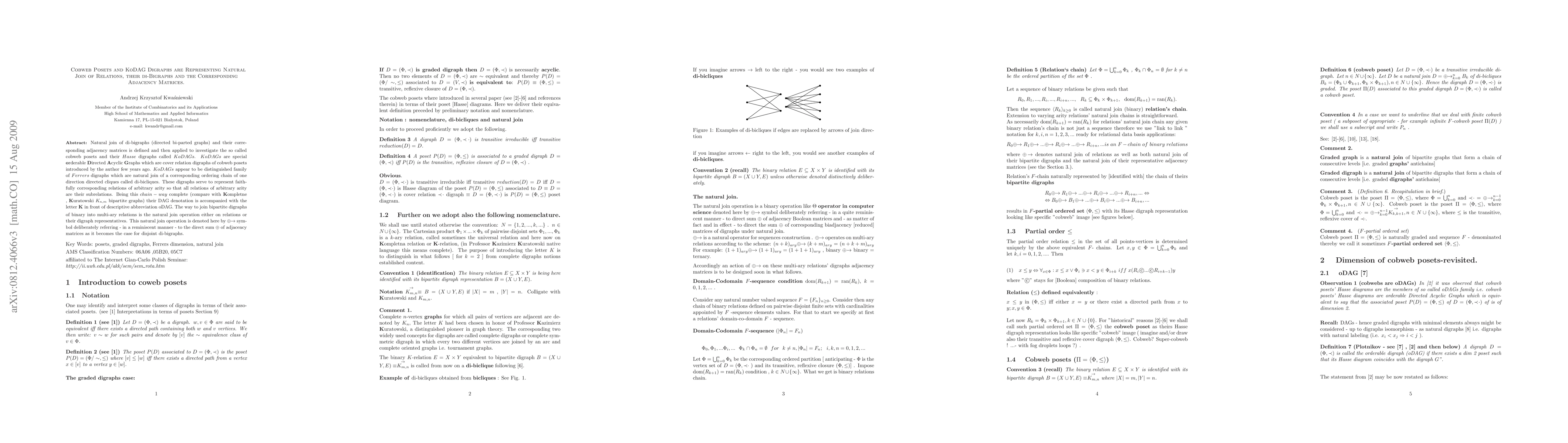 Natural join of $di-bigraphs$ that is directed biparted graphs and their corresponding adjacency matrices is defined and then applied to investigate the so called cobweb posets and their $Hasse$ digraphs called $KoDAGs$. $KoDAGs$ are special orderable directed acyclic graphs which are cover relation digraphs of cobweb posets introduced by the author few years ago. $KoDAGs$ appear to be distinguished family of $Ferrers$ digraphs which are natural join of a corresponding ordering chain of one direction directed cliques called $di-bicliques$. These digraphs serve to represent faithfully corresponding relations of arbitrary arity so that all relations of arbitrary arity are their subrelations. Being this $chain -way$ complete if compared with kompletne $Kuratowski$ bipartite graphs their $DAG$ denotation is accompanied with the letter $K$ in front of descriptive abbreviation $oDAG$. The way to join bipartite digraphs of binary into $multi-ary$ relations is the natural join operation either on relations or their digraph representatives. This natural join operation is denoted here by $\os$ symbol deliberately referring to the direct sum $\oplus$ of adjacency matrices as it becomes the case for disjoint $di-bigraphs$.