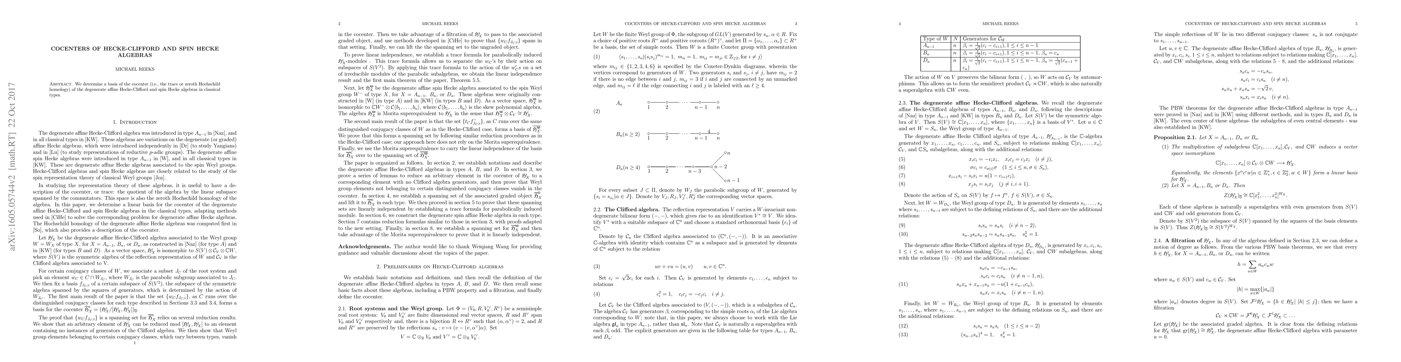 This paper determines a basis for the cocenter of degenerate affine Hecke-Clifford and spin Hecke algebras in classical types, elucidating their zeroth Hochschild homology. The findings provide deeper insight into the structural properties of these algebraic objects.