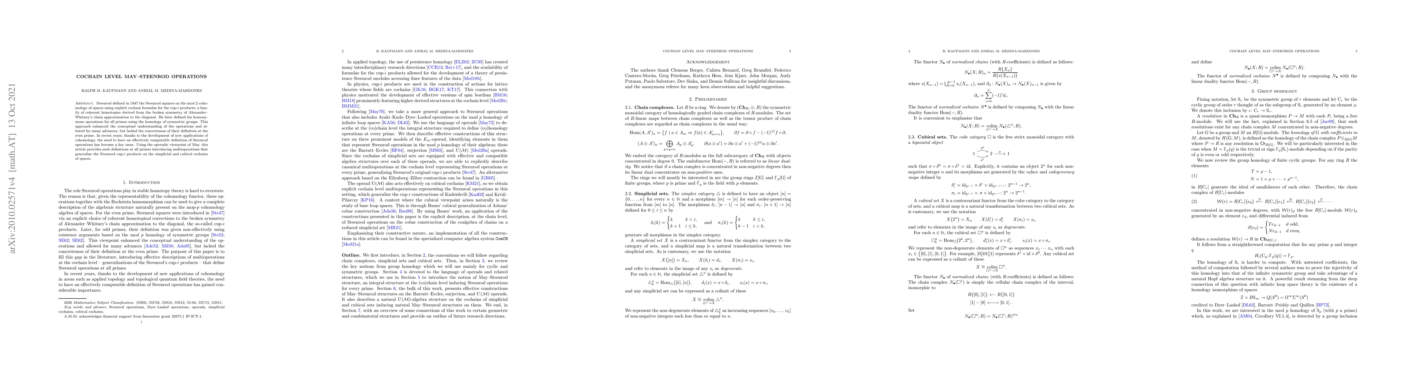 This paper redefines Steenrod operations at all primes using May's operadic viewpoint, introducing multioperations that generalize Steenrod squares for simplicial and cubical cochains to provide a concrete and computable framework.