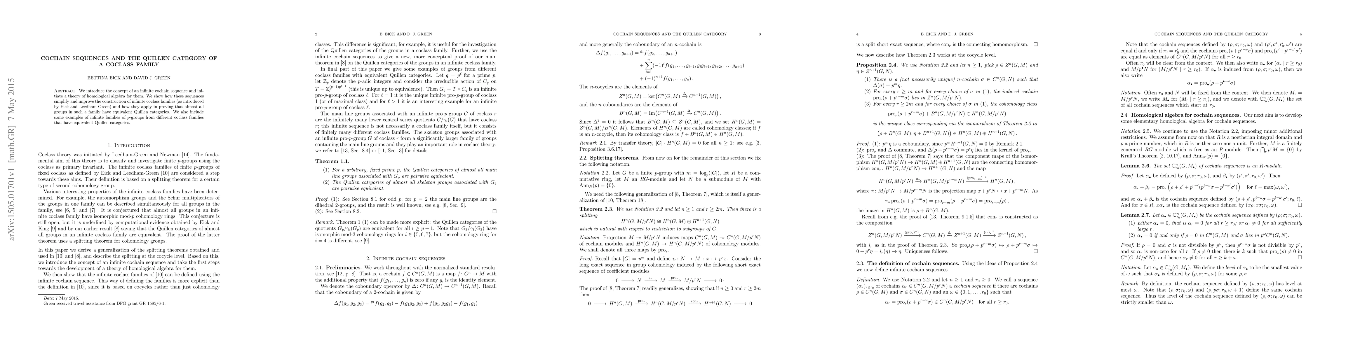 Researchers introduce a new theory of homological algebra for infinite cochain sequences, simplifying the construction of infinite coclass families and proving that almost all groups in these families have equivalent Quillen categories.