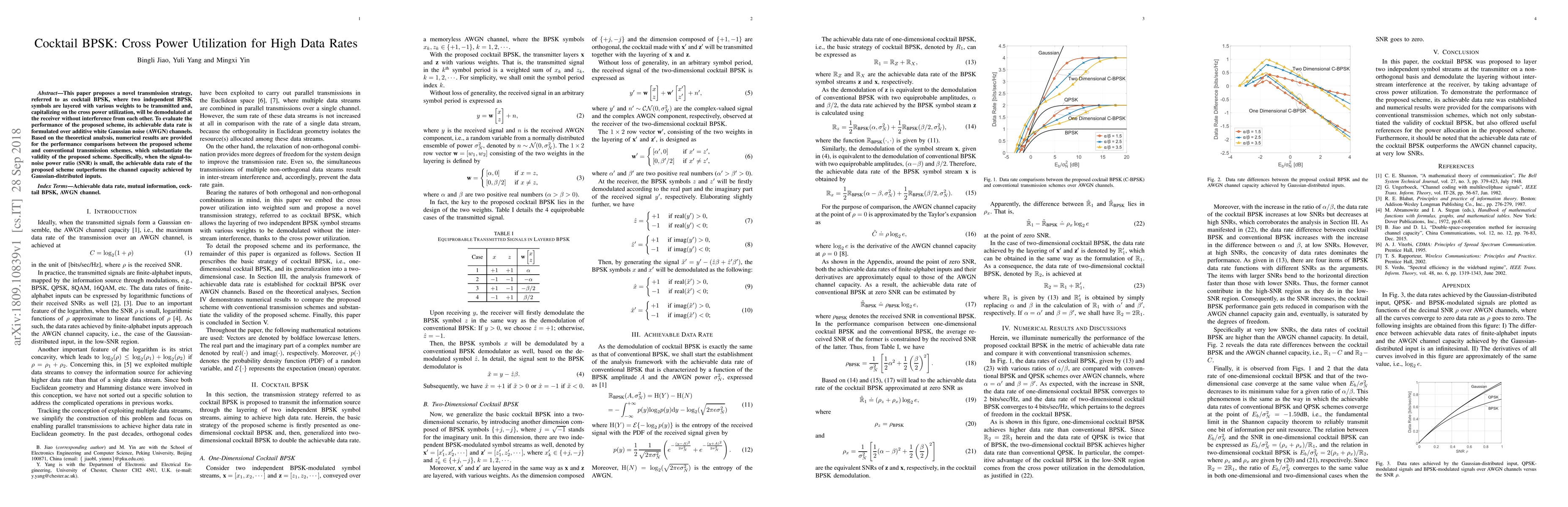This paper proposes a novel transmission strategy, referred to as cocktail BPSK, where two independent BPSK symbols are layered with various weights to be transmitted and, capitalizing on the cross power utilization, will be demodulated at the receiver without interference from each other. To evaluate the performance of the proposed scheme, its achievable data rate is formulated over additive white Gaussian noise (AWGN) channels. Based on the theoretical analysis, numerical results are provided for the performance comparisons between the proposed scheme and conventional transmission schemes, which substantiate the validity of the proposed scheme. Specifically, when the signal-to-noise power ratio (SNR) is small, the achievable data rate of the proposed scheme outperforms the channel capacity achieved by Gaussian-distributed inputs.