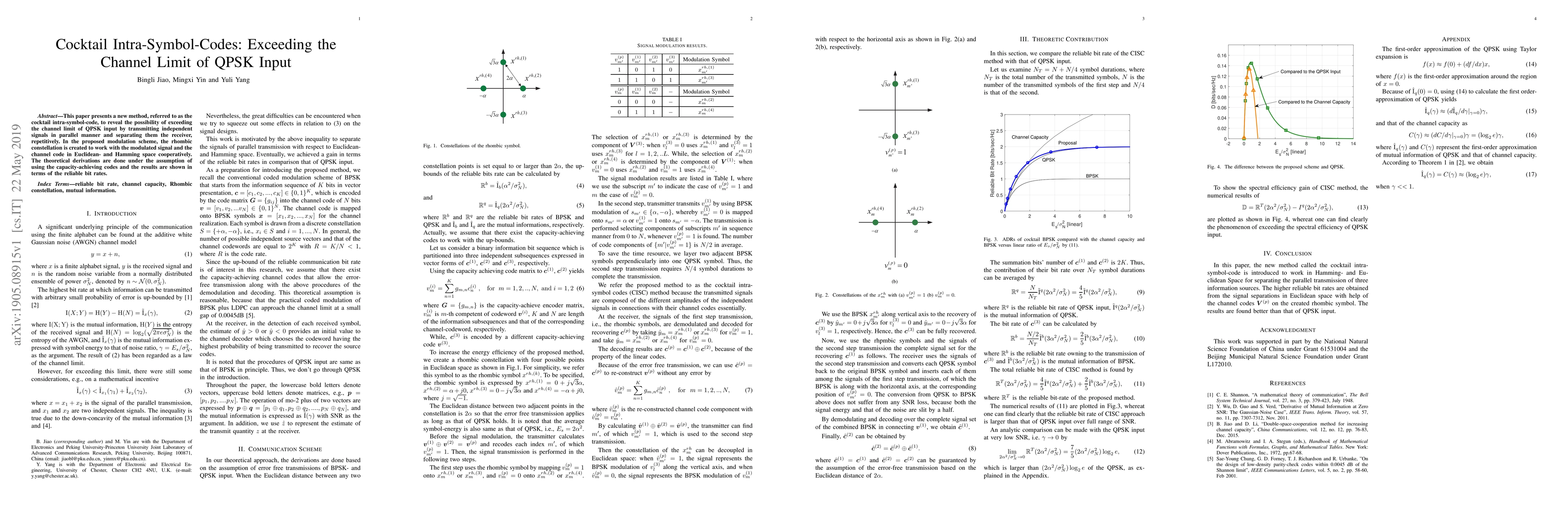 This paper presents a new method, referred to as the cocktail intra-symbol-code, to reveal the possibility of exceeding the channel limit of QPSK input by transmitting independent signals in parallel manner and separating them the receiver, repetitively. In the proposed modulation scheme, the rhombic constellation is created to work with the modulated signal and the channel code in Euclidean- and Hamming space cooperatively. The theoretical derivations are done under the assumption of using the capacity-achieving codes and the results are shown in terms of the reliable bit rates.