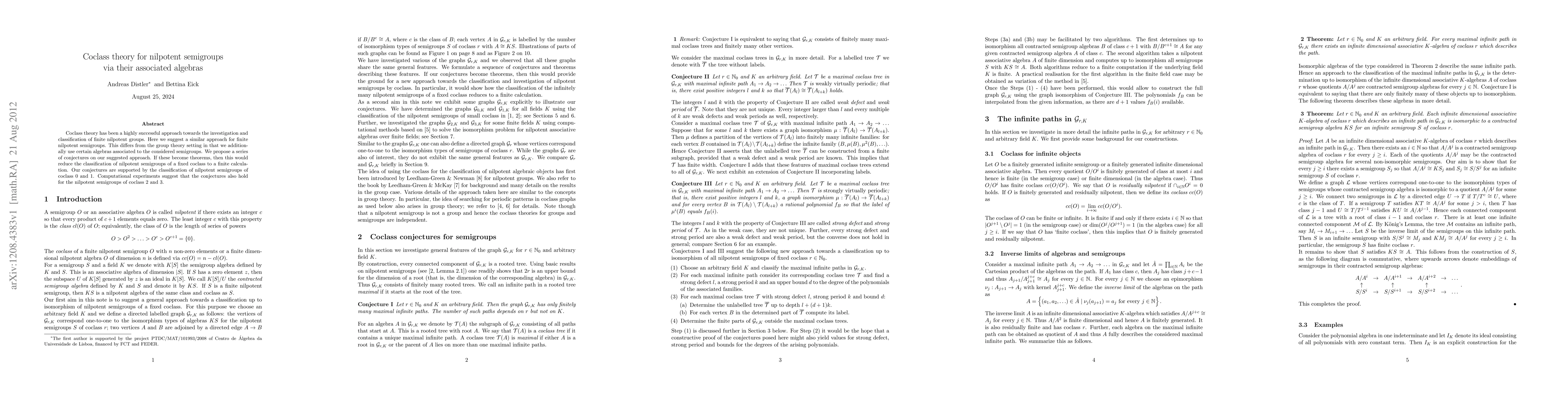 This paper proposes a coclass theory for finite nilpotent semigroups using associated algebras, extending the successful method used in finite nilpotent group classification. The authors suggest a series of conjectures that, if proven, would enable a finite calculation for classifying nilpotent semigroups of a fixed coclass, supported by classifications of coclass 0, 1, and preliminary evidence for coclass 2 and 3.