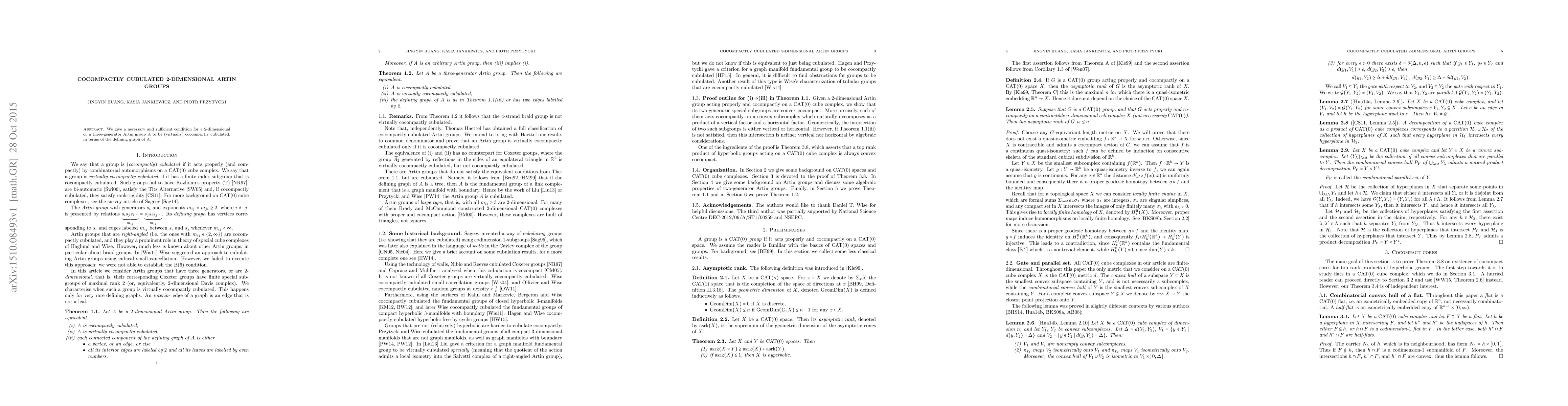 Summary: This paper provides a necessary and sufficient condition for a two-dimensional, three-generator Artin group to be (virtually) cocompactly cubulated, based on its defining graph. The condition elucidates the group's geometric and combinatorial properties.