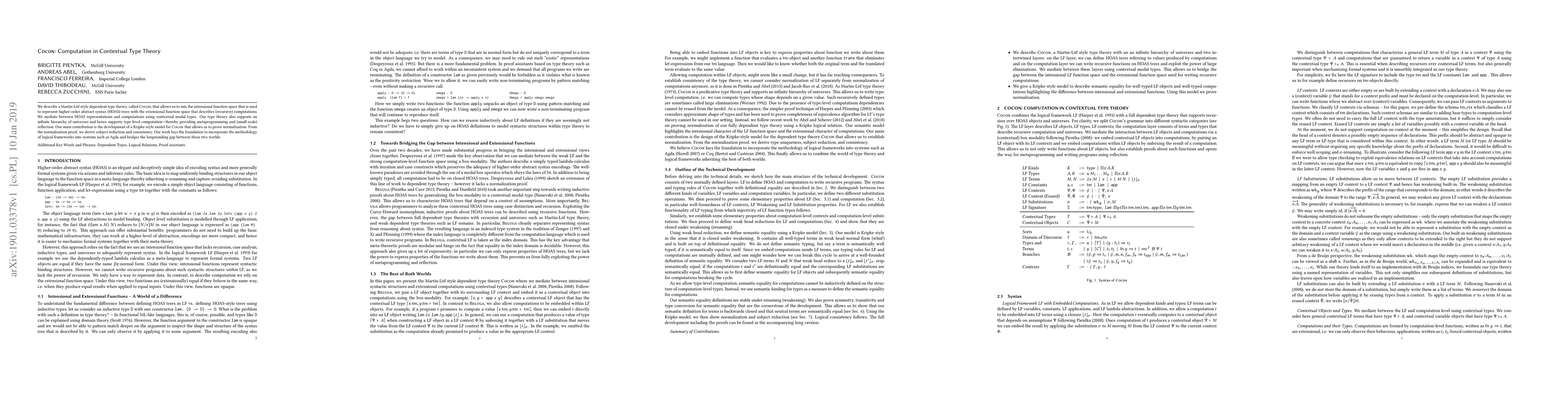 Cocon is a Martin-Löf style dependent type theory that integrates higher-order abstract syntax with recursive computations using contextual modal types. It supports an infinite hierarchy of universes, enabling metaprogramming and reflection, and includes a Kripke-style model proving normalization, subject reduction, and consistency.