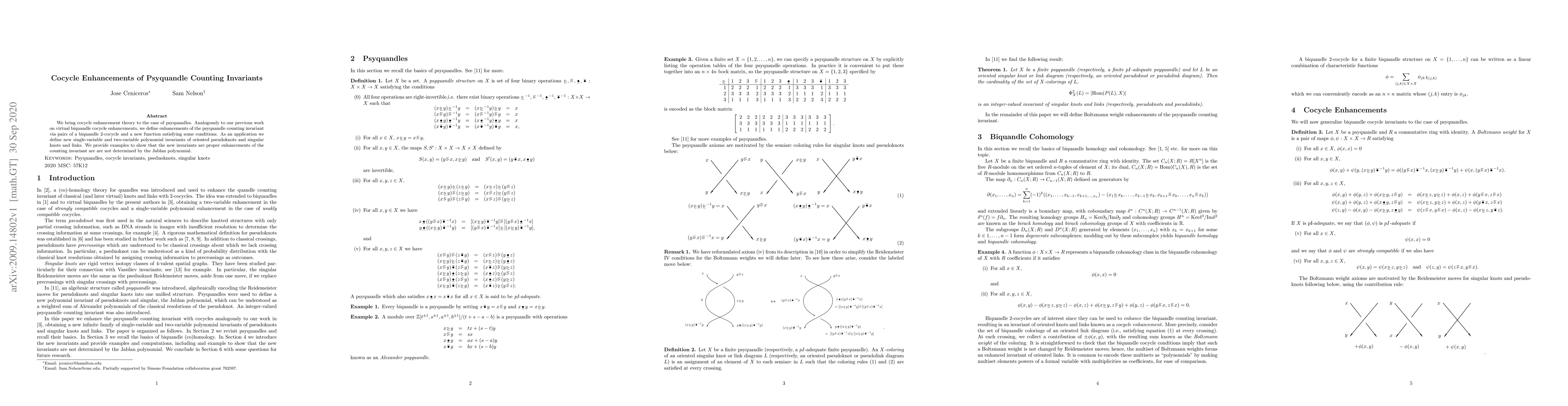 This paper introduces cocycle enhancements to psyquandle counting invariants, defining new invariants for pseudoknots and singular knots via biquandle 2-cocycles and a specific function. The new invariants are shown to be improvements over the counting method and distinct from the Jablan polynomial.