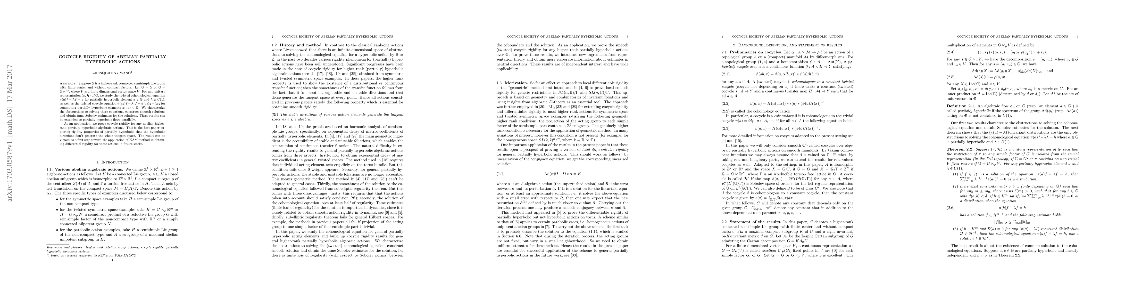 This paper studies cocycle rigidity for abelian partially hyperbolic actions of higher-rank semisimple Lie groups, proving that such actions are rigid when hyperbolic directions do not span the entire tangent space. The authors characterize obstructions to solving twisted cohomological and cocycle equations, construct smooth solutions, and derive Sobolev estimates, laying groundwork for future differential rigidity applications.