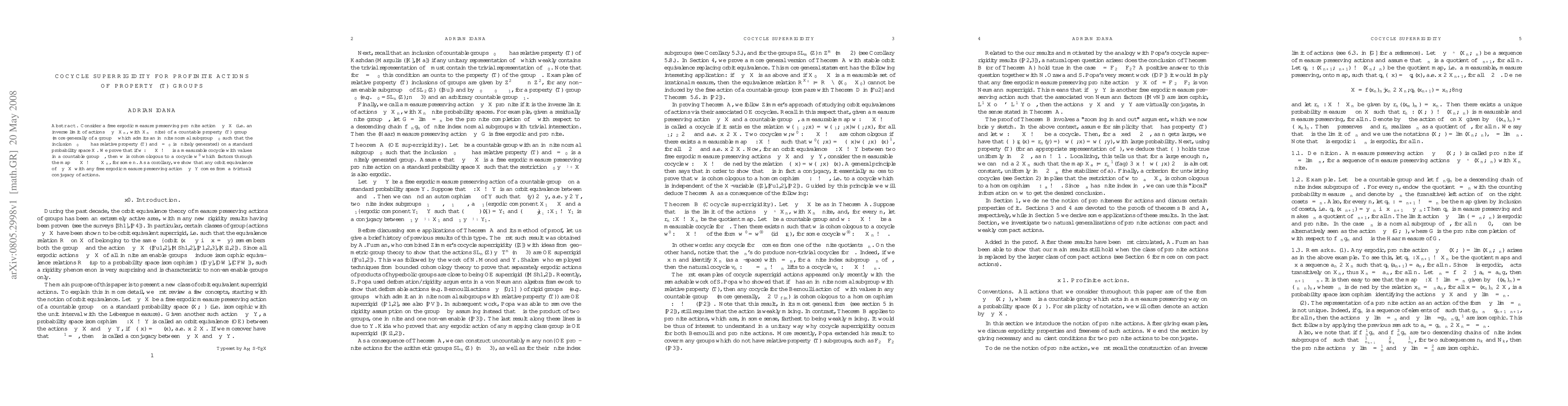 Consider a free ergodic measure preserving profinite action $\Gamma\curvearrowright X$ (i.e. an inverse limit of actions $\Gamma\curvearrowright X_n$, with $X_n$ finite) of a countable property (T) group $\Gamma$ (more generally of a group $\Gamma$ which admits an infinite normal subgroup $\Gamma_0$ such that the inclusion $\Gamma_0\subset\Gamma$ has relative property (T) and $\Gamma/\Gamma_0$ is finitely generated) on a standard probability space $X$. We prove that if $w:\Gamma\times X\to \Lambda$ is a measurable cocycle with values in a countable group $\Lambda$, then $w$ is cohomologous to a cocycle $w'$ which factors through the map $\Gamma\times X\to \Gamma\times X_n$, for some $n$. As a corollary, we show that any orbit equivalence of $\Gamma\curvearrowright X$ with any free ergodic measure preserving action $\Lambda\curvearrowright Y$ comes from a (virtual) conjugacy of actions.