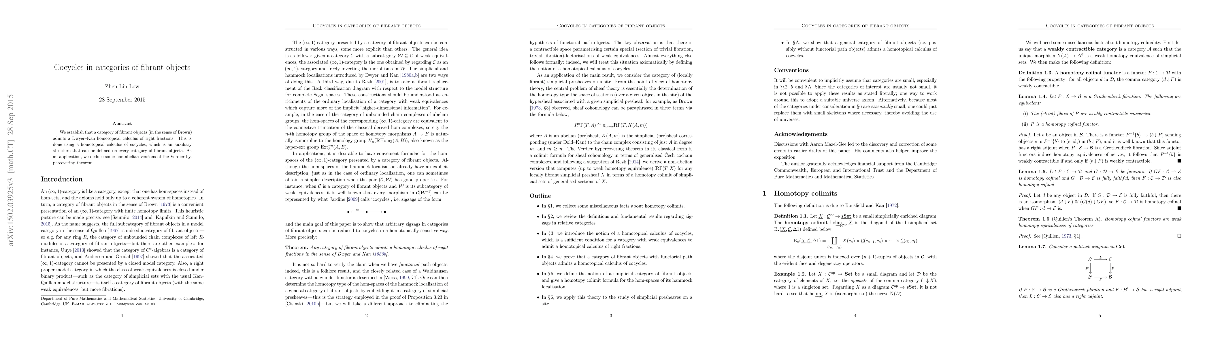 This paper proves that categories of fibrant objects support a Dwyer-Kan calculus of right fractions through a homotopical calculus of cocycles, enabling non-abelian versions of the Verdier hypercovering theorem.