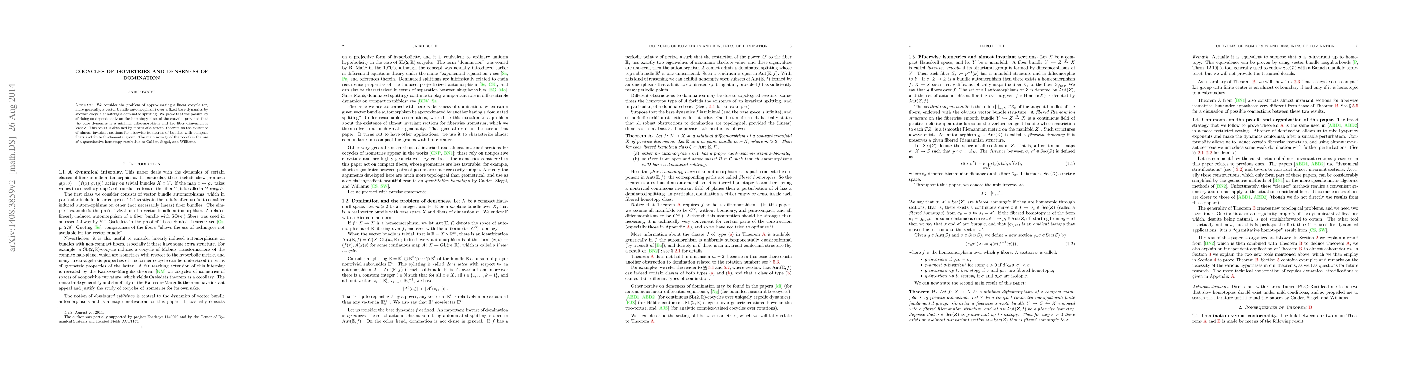 We consider the problem of approximating a linear cocycle (or, more generally, a vector bundle automorphism) over a fixed base dynamics by another cocycle admitting a dominated splitting. We prove that the possibility of doing so depends only on the homotopy class of the cocycle, provided that the base dynamics is a minimal diffeomorphism and the fiber dimension is least 3. This result is obtained by means of a general theorem on the existence of almost invariant sections for fiberwise isometries of bundles with compact fibers and finite fundamental group. The main novelty of the proofs is the use of a quantitative homotopy result due to Calder, Siegel, and Williams.