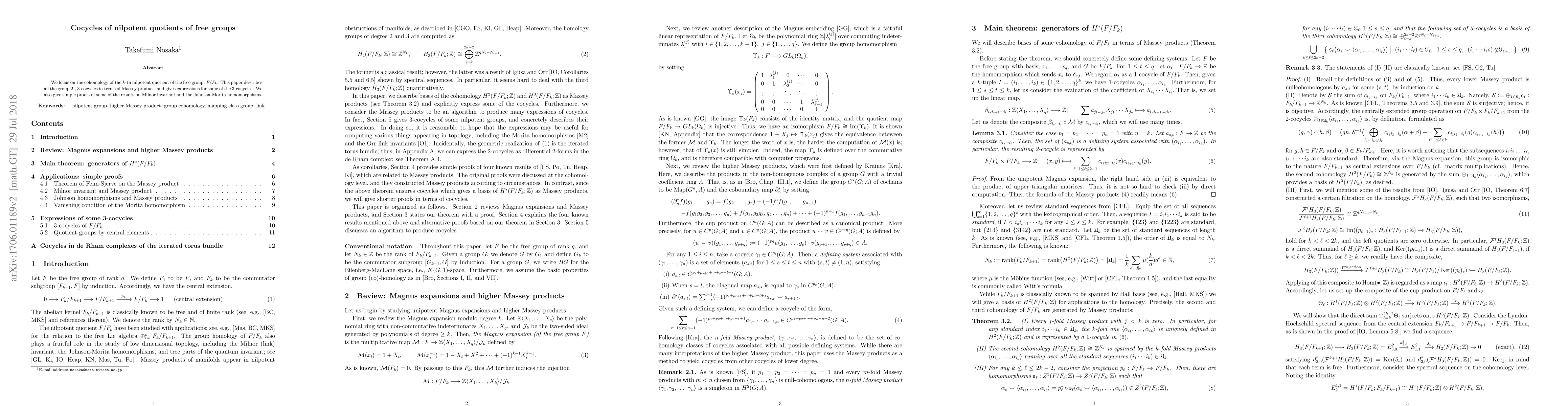 The paper introduces a method to describe and express group cocycles using Massey products, providing a new perspective on the cohomology of nilpotent quotients of free groups.