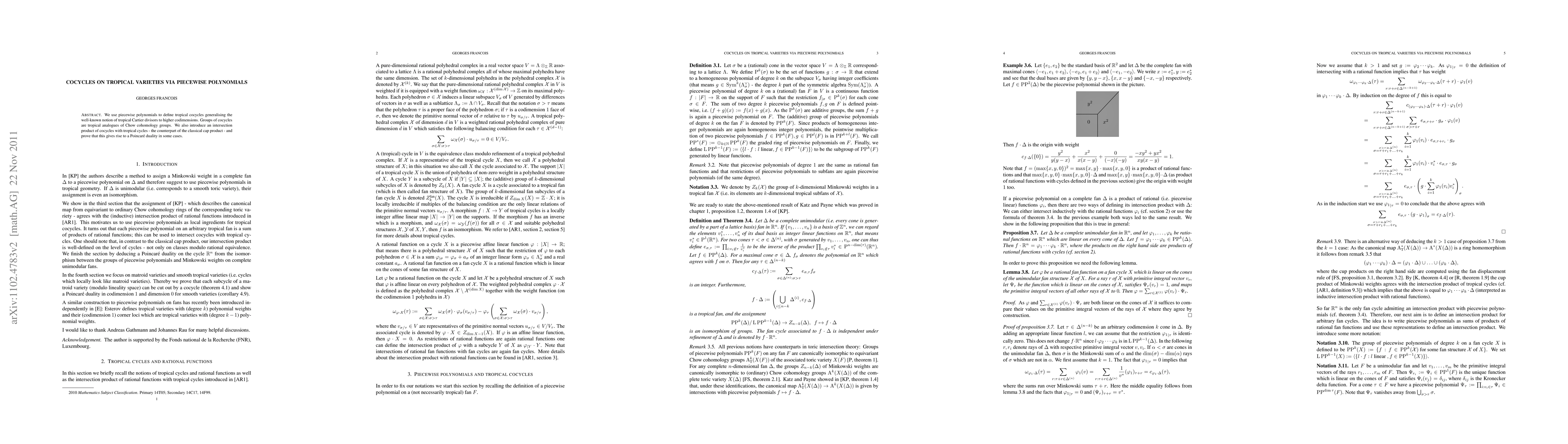The paper introduces tropical cocycles using piecewise polynomials to generalize tropical Cartier divisors to higher codimensions, and establishes an intersection product with tropical cycles, demonstrating Poincaré duality in certain cases. This work parallels Chow cohomology groups and provides a tropical analogue of classical algebraic geometry concepts.