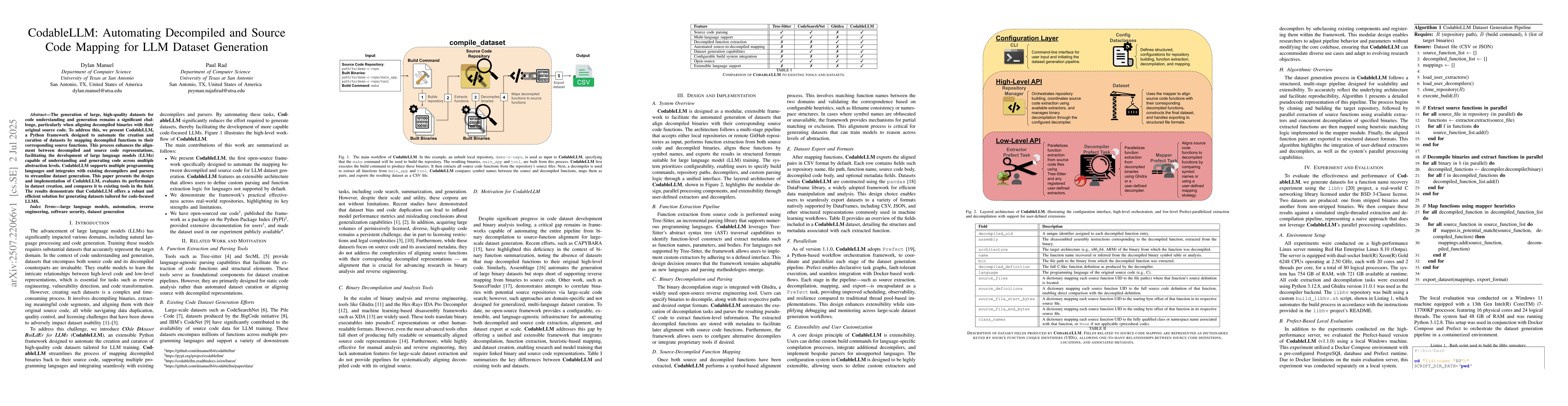 The generation of large, high-quality datasets for code understanding and generation remains a significant challenge, particularly when aligning decompiled binaries with their original source code. To address this, we present CodableLLM, a Python framework designed to automate the creation and curation of datasets by mapping decompiled functions to their corresponding source functions. This process enhances the alignment between decompiled and source code representations, facilitating the development of large language models (LLMs) capable of understanding and generating code across multiple abstraction levels. CodableLLM supports multiple programming languages and integrates with existing decompilers and parsers to streamline dataset generation. This paper presents the design and implementation of CodableLLM, evaluates its performance in dataset creation, and compares it to existing tools in the field. The results demonstrate that CodableLLM offers a robust and efficient solution for generating datasets tailored for code-focused LLMS.