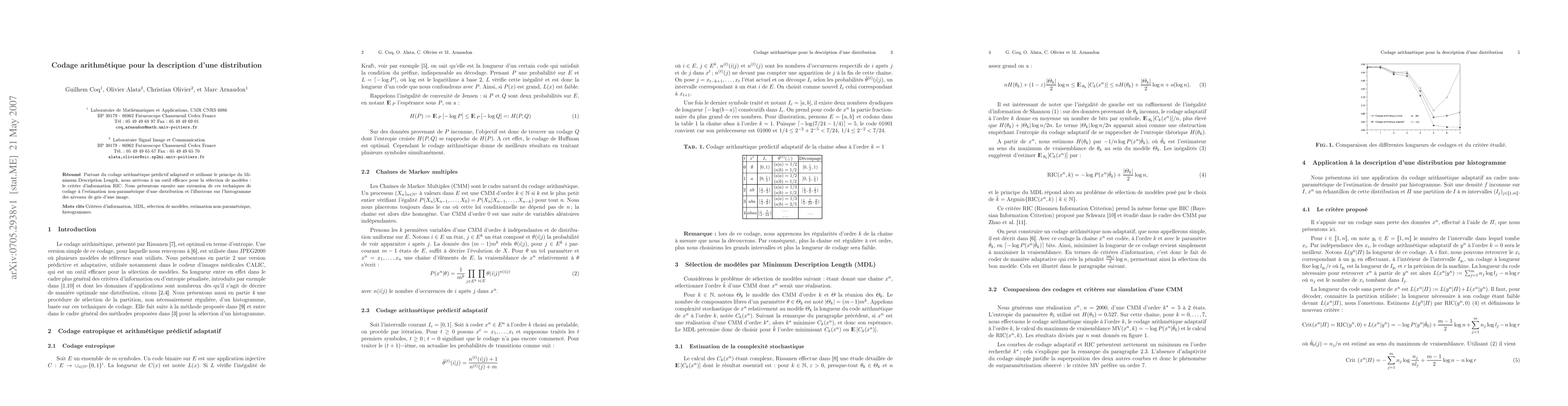 Using predictive adaptive arithmetic coding and the Minimum Description Length principle, we derive an efficient tool for model selection problems : the RIC information criterion. We then present an extension of these coding techniques to non-parametrical estimation of a distribution and illustrate it on the gray scales histogram of an image. Key-words : Information criteria, MDL, model selection, non-parametrical estimation, histograms.