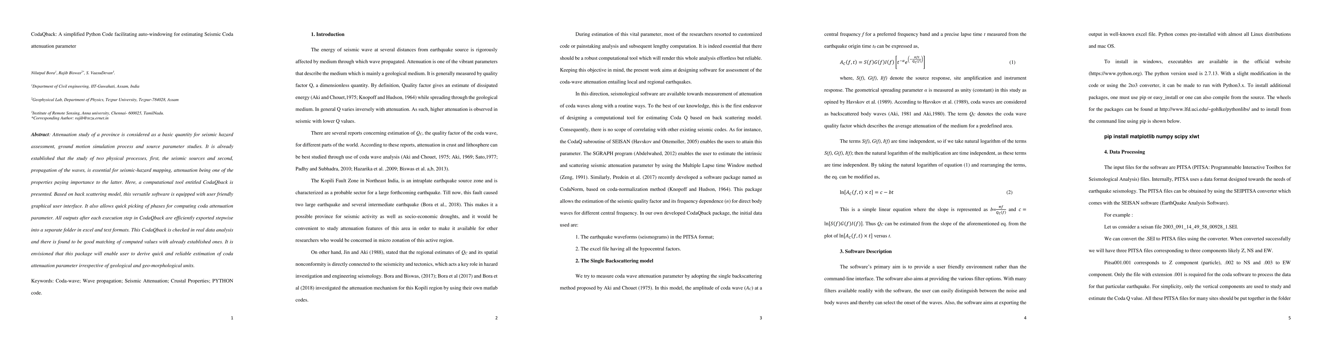 CodaQback is a user-friendly Python tool designed for estimating seismic coda attenuation parameters using a back scattering model. It facilitates quick data analysis and exports results in Excel and text formats for further study.