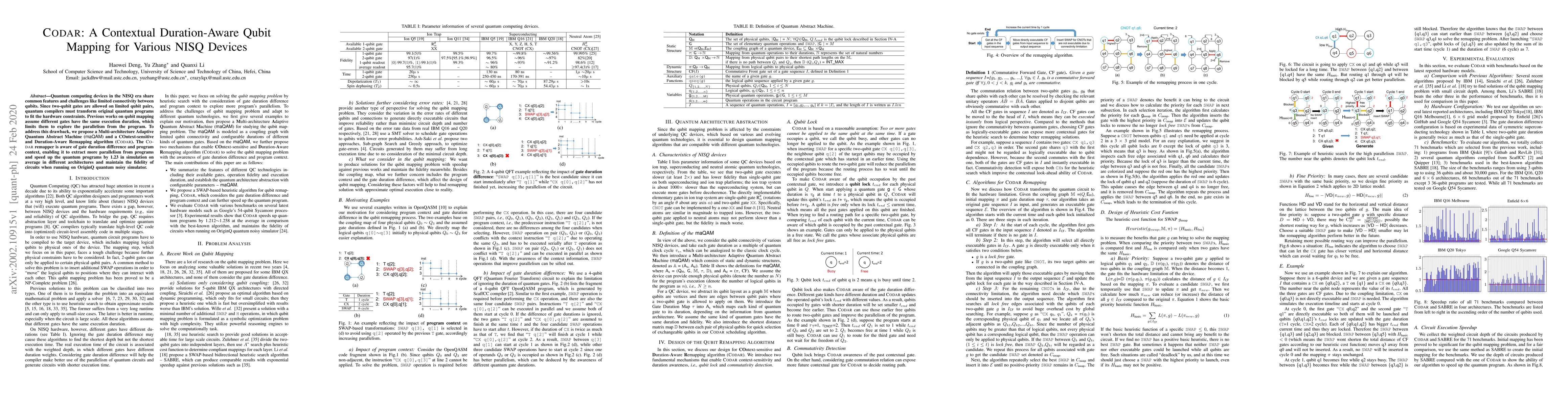 Quantum computing devices in the NISQ era share common features and challenges like limited connectivity between qubits. Since two-qubit gates are allowed on limited qubit pairs, quantum compilers must transform original quantum programs to fit the hardware constraints. Previous works on qubit mapping assume different gates have the same execution duration, which limits them to explore the parallelism from the program. To address this drawback, we propose a Multi-architecture Adaptive Quantum Abstract Machine (maQAM) and a COntext-sensitive and Duration-Aware Remapping algorithm (CODAR). The CODAR remapper is aware of gate duration difference and program context, enabling it to extract more parallelism from programs and speed up the quantum programs by 1.23 in simulation on average in different architectures and maintain the fidelity of circuits when running on Origin Quantum noisy simulator.