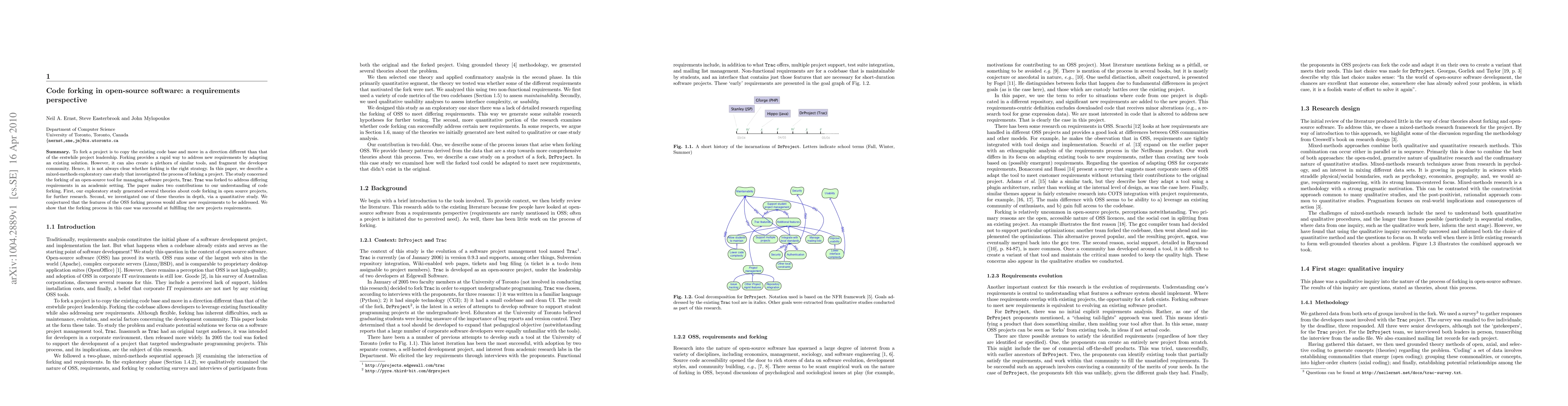 This paper explores the process of forking open-source software projects through a mixed-methods study on the Trac project. It identifies theories about code forking and demonstrates that the forking process successfully addressed new requirements in an academic setting.