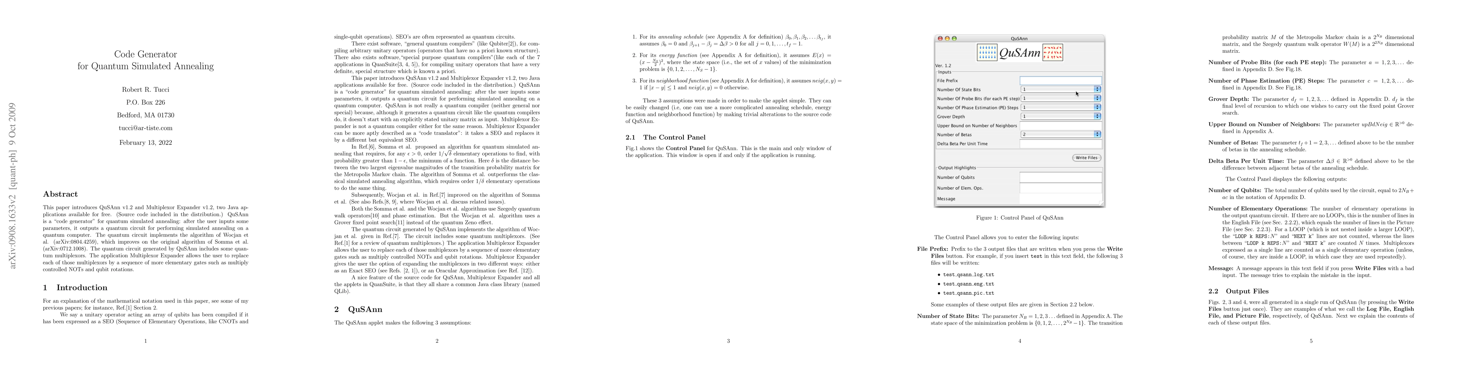 The paper introduces QuSAnn v1.2 and Multiplexor Expander v1.2, Java applications that generate quantum circuits for simulated annealing and expand quantum multiplexors into more elementary gates.