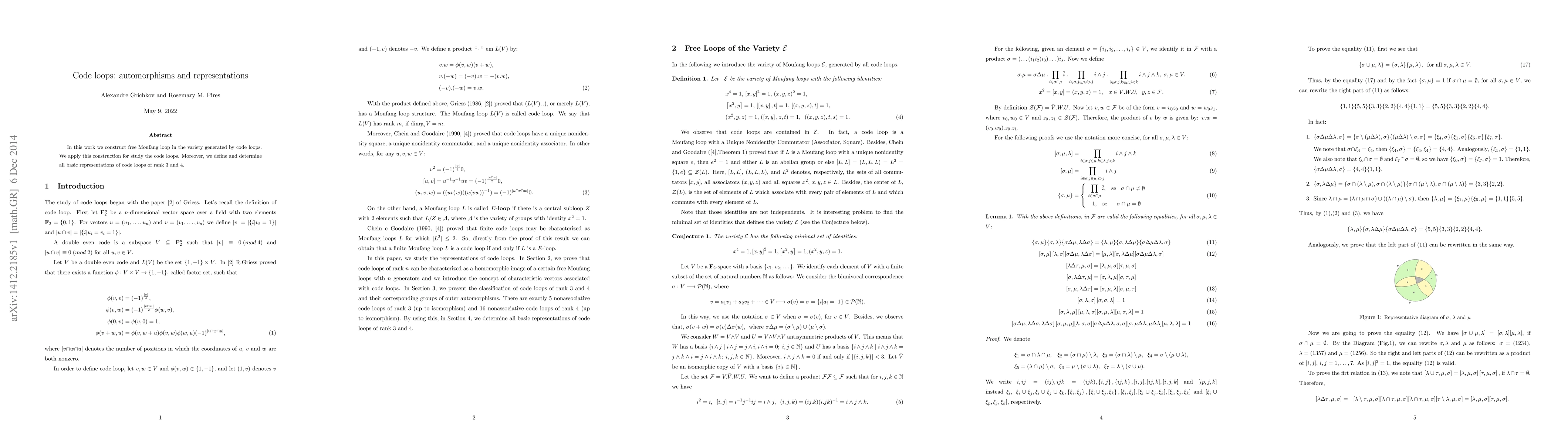 Summary: This paper constructs a free Moufang loop within the variety generated by code loops and applies this construction to study code loops, also determining all basic representations for code loops of ranks 3 and 4.