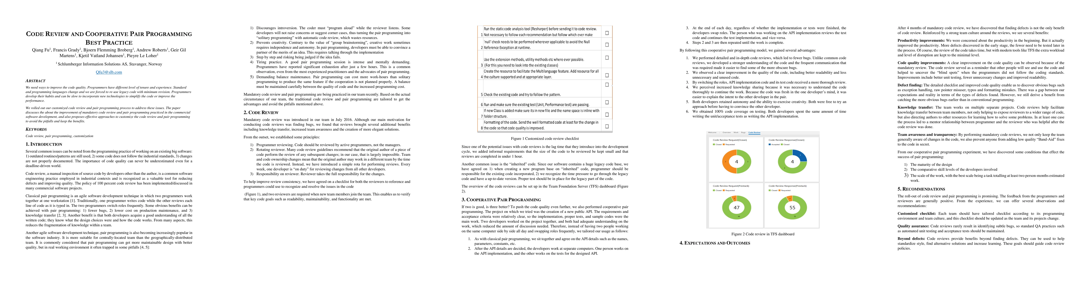 We need ways to improve the code quality. Programmers have different level of tenure and experience. Standard and programming languages change and we are forced to re-use legacy code with minimum revision. Programmers develop their habits and can be slow to incorporate new technologies to simplify the code or improve the performance. We rolled out our customized code review and pair programming process to address these issues. The paper discusses the about the improvement of mandatory code review and pair programming practiced in the commercial software development, and also proposes effective approaches to customize the code review and pair programming to avoid the pitfalls and keep the benefits.