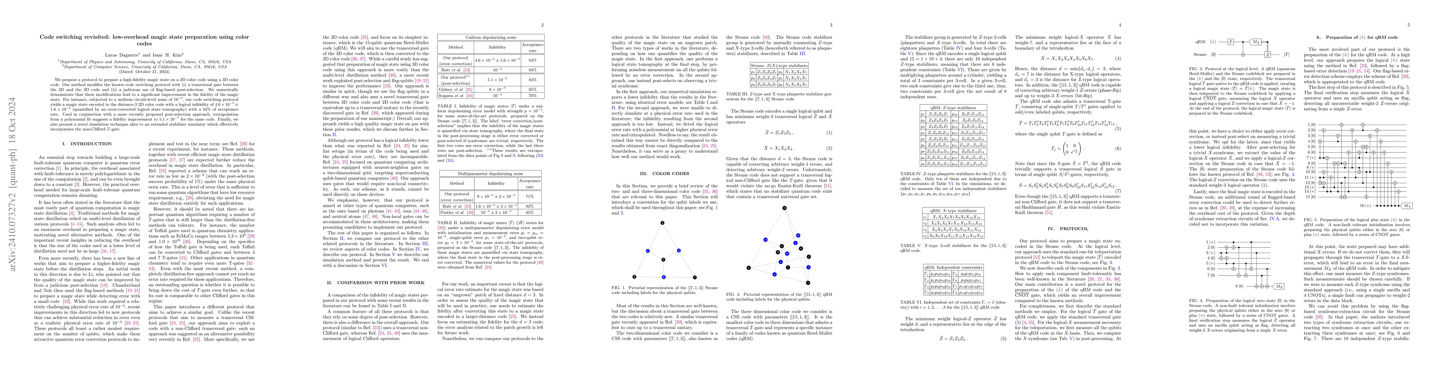 We propose a protocol to prepare a high-fidelity magic state on a 2D color code using a 3D color code. Our method modifies the known code switching protocol with (i) a transversal gate between the 2D and the 3D code and (ii) a judicious use of flag-based post-selection. We numerically demonstrate that these modifications lead to a significant improvement in the fidelity of the magic state. For instance, subjected to a uniform circuit-level noise of $10^{-3}$, our code switching protocol yields a magic state encoded in the distance-$3$ 2D color code with a logical infidelity of $4.6\times 10^{-5}\pm 1.6 \times 10^{-5}$ (quantified by an error-corrected logical state tomography) with a $84\%$ of acceptance rate. Used in conjunction with a more recently proposed post-selection approach, extrapolation from a polynomial fit suggests a fidelity improvement to $5.1 \times 10^{-7}$ for the same code. Finally, we also present a novel simulation technique akin to an extended stabilizer simulator which effectively incorporates the non-Clifford $T$-gate.