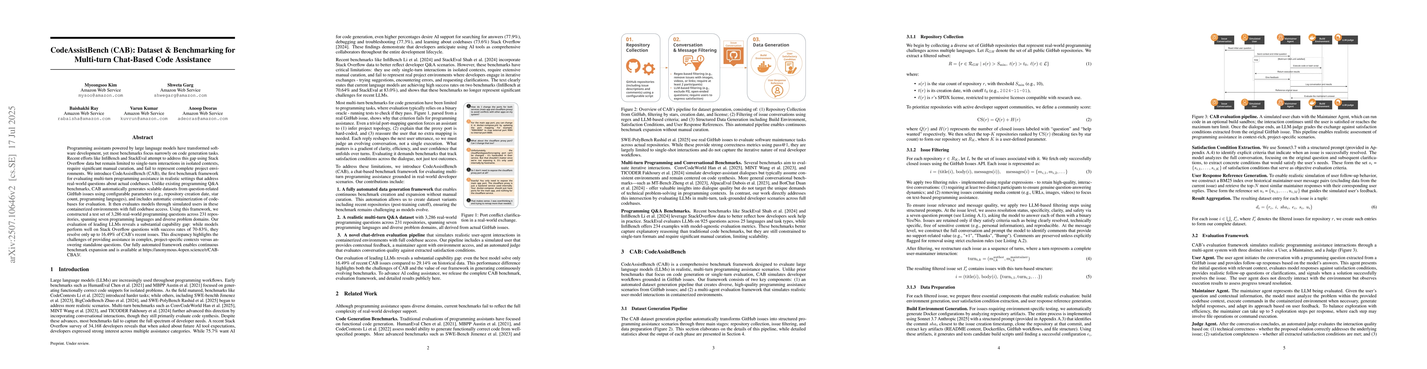 Programming assistants powered by large language models have transformed software development, yet most benchmarks focus narrowly on code generation tasks. Recent efforts like InfiBench and StackEval attempt to address this gap using Stack Overflow data but remain limited to single-turn interactions in isolated contexts, require significant manual curation, and fail to represent complete project environments. We introduce CodeAssistBench (CAB), the first benchmark framework for evaluating multi-turn programming assistance in realistic settings that address real-world questions about actual codebases. Unlike existing programming Q&A benchmarks, CAB automatically generates scalable datasets from question-related GitHub issues using configurable parameters (e.g., repository creation date, star count, programming languages), and includes automatic containerization of codebases for evaluation. It then evaluates models through simulated users in these containerized environments with full codebase access. Using this framework, we constructed a test set of 3,286 real-world programming questions across 231 repositories, spanning seven programming languages and diverse problem domains. Our evaluation of leading LLMs reveals a substantial capability gap: while models perform well on Stack Overflow questions with success rates of 70-83%, they resolve only up to 16.49% of CAB's recent issues. This discrepancy highlights the challenges of providing assistance in complex, project-specific contexts versus answering standalone questions.