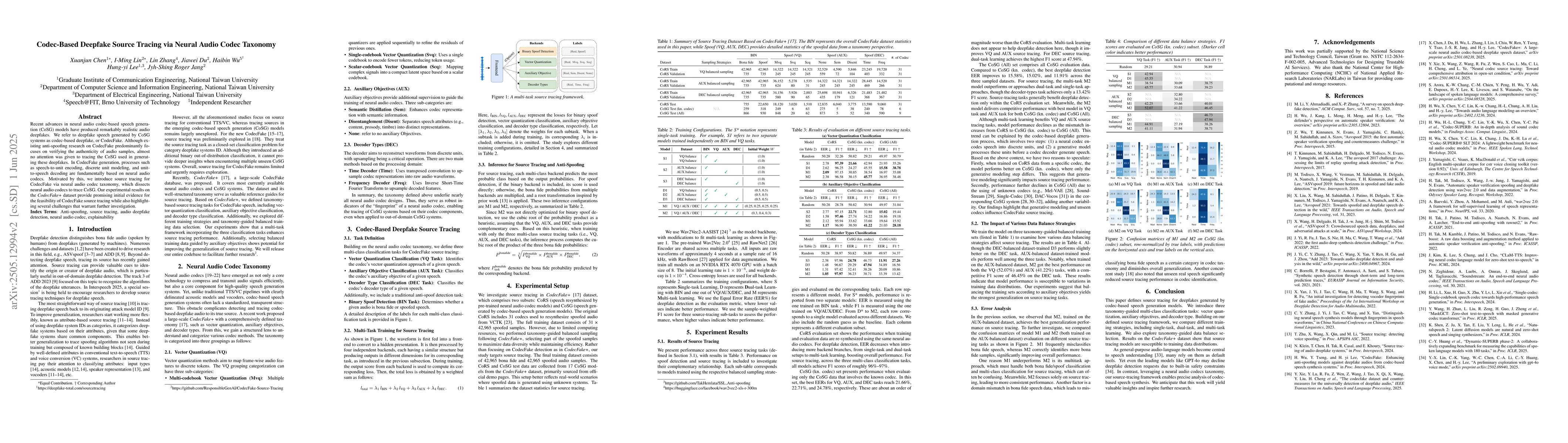 This work is novel as it focuses on source tracing of CodecFakes, an area largely unexplored in existing anti-spoofing research.