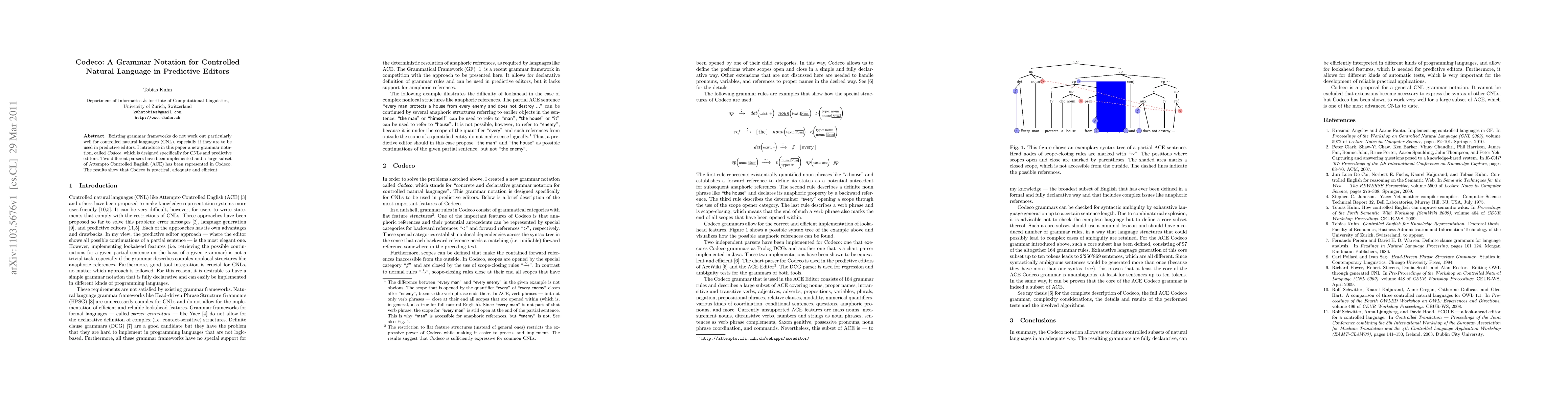 Codeco is a new grammar notation designed for controlled natural languages (CNL) and predictive editors, demonstrating practical, adequate, and efficient results through the implementation of two parsers and representation of a subset of Attempto Controlled English (ACE).