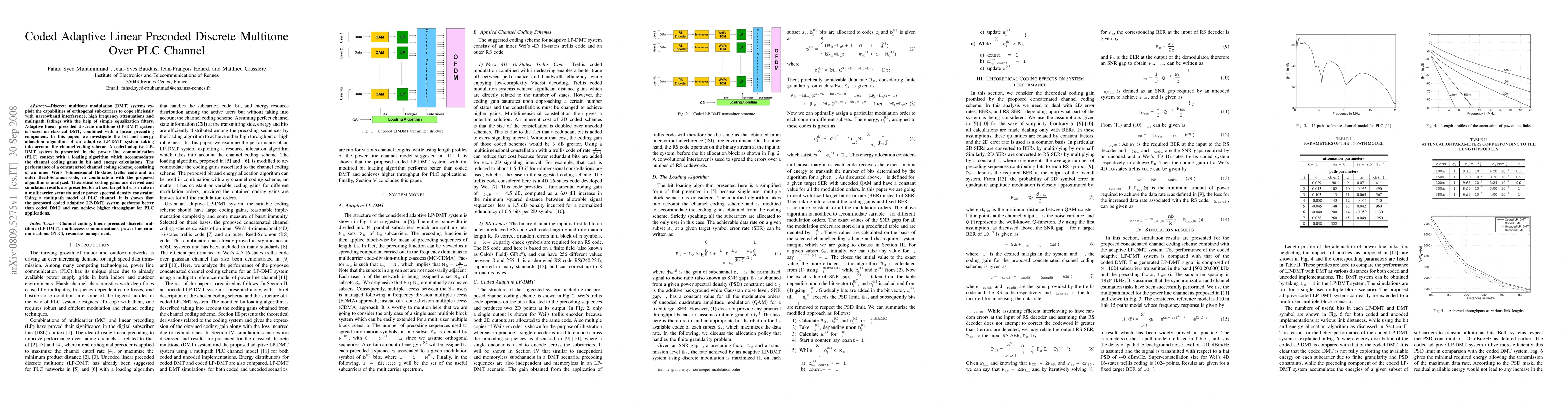 Discrete multitone modulation (DMT) systems exploit the capabilities of orthogonal subcarriers to cope efficiently with narrowband interference, high frequency attenuations and multipath fadings with the help of simple equalization filters. Adaptive linear precoded discrete multitone (LP-DMT) system is based on classical DMT, combined with a linear precoding component. In this paper, we investigate the bit and energy allocation algorithm of an adaptive LP-DMT system taking into account the channel coding scheme. A coded adaptive LPDMT system is presented in the power line communication (PLC) context with a loading algorithm which accommodates the channel coding gains in bit and energy calculations. The performance of a concatenated channel coding scheme, consisting of an inner Wei's 4-dimensional 16-states trellis code and an outer Reed-Solomon code, in combination with the proposed algorithm is analyzed. Theoretical coding gains are derived and simulation results are presented for a fixed target bit error rate in a multicarrier scenario under power spectral density constraint. Using a multipath model of PLC channel, it is shown that the proposed coded adaptive LP-DMT system performs better than coded DMT and can achieve higher throughput for PLC applications.