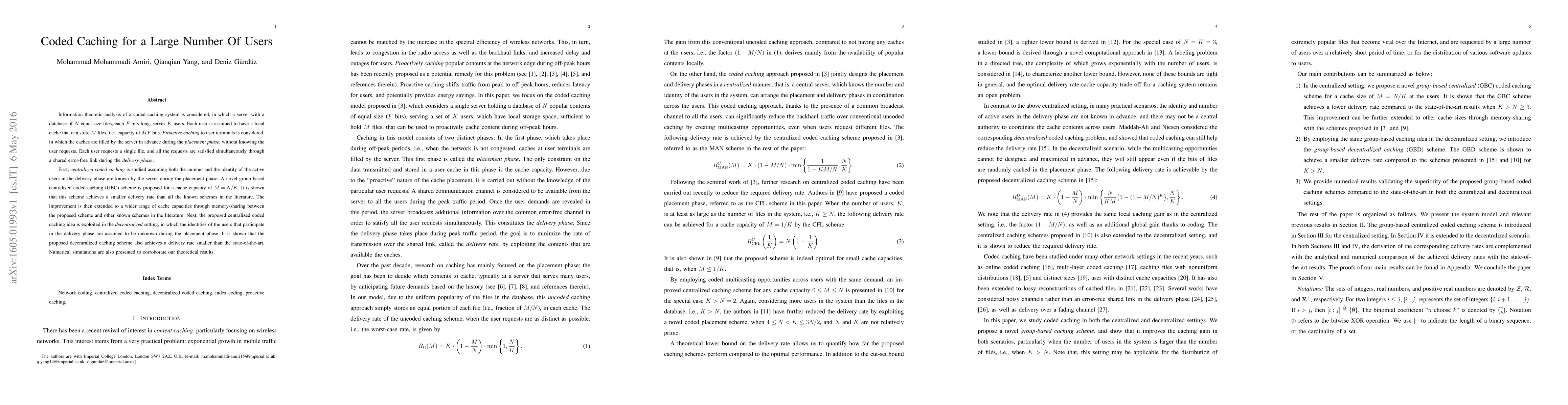 This paper investigates coded caching systems for serving a large number of users, proposing a novel group-based centralized caching scheme that achieves a lower delivery rate than existing methods. The approach is extended to decentralized settings, also outperforming current state-of-the-art, with numerical simulations supporting the theoretical findings.