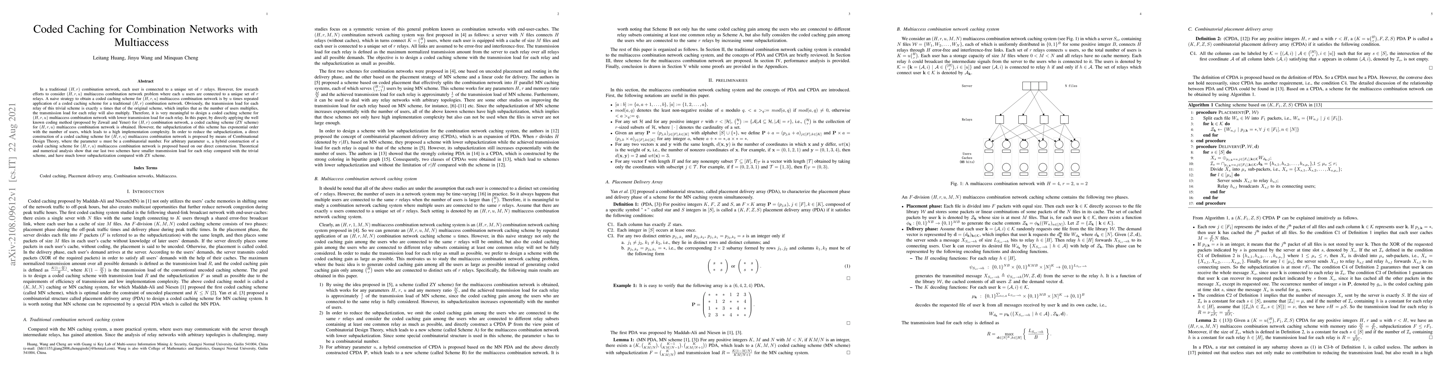 The paper extends a traditional (H, r) combination network to an (H, r, u) multiaccess combination network, proposing three caching schemes: ZY scheme, Scheme A, and Scheme B. Scheme A is derived from a direct construction of CPDA using Combinatorial Design Theory, while Scheme B is a hybrid construction based on a given CPDA and PDA.