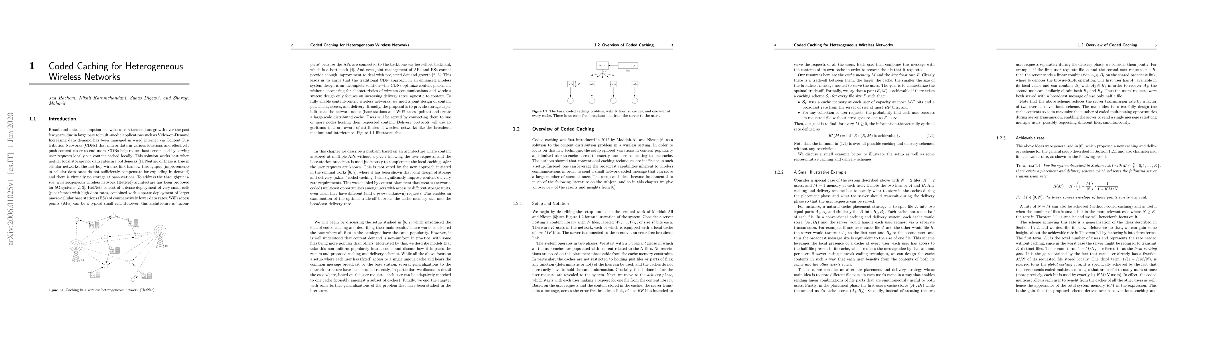 This chapter provides an overview of coded caching in the context of heterogeneous wireless networks. We begin by briefly describing the key idea behind coded caching and then discuss in detail the impact of various aspects such as non-uniform content popularity, multiple cache access, and interference.