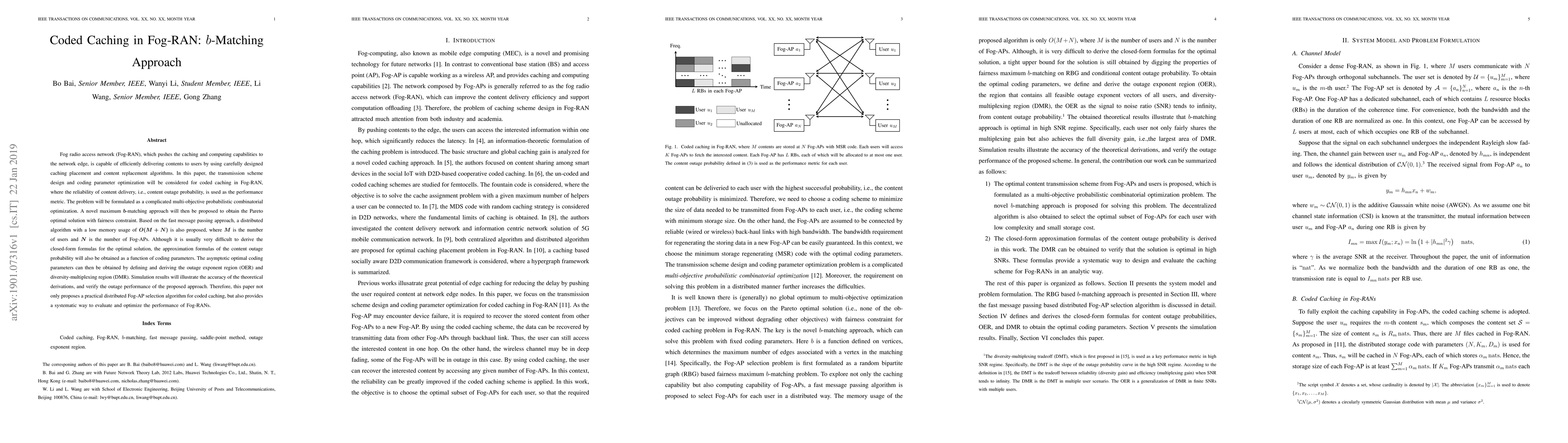This paper proposes a maximum b-matching approach for coded caching in Fog-RAN to optimize content delivery reliability, using a distributed algorithm with low memory usage. The study formulates the problem as a multi-objective optimization, derives approximation formulas for content outage probability, and evaluates performance through simulations.