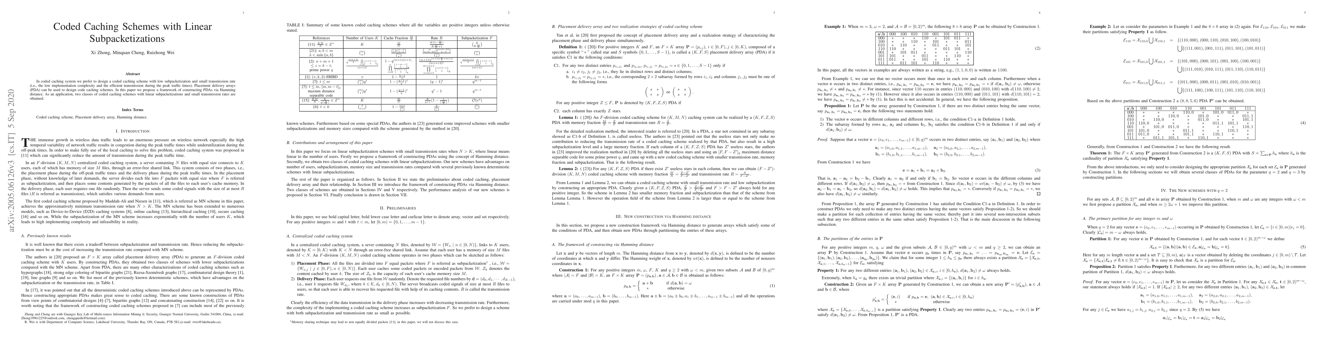 This paper proposes a framework for constructing placement delivery arrays (PDAs) using Hamming distance to design coded caching schemes with low subpacketization and small transmission rates, aiming to reduce implementation complexity and improve efficiency during peak traffic times. The framework results in two classes of coded caching schemes with linear subpacketizations and minimal transmission rates.