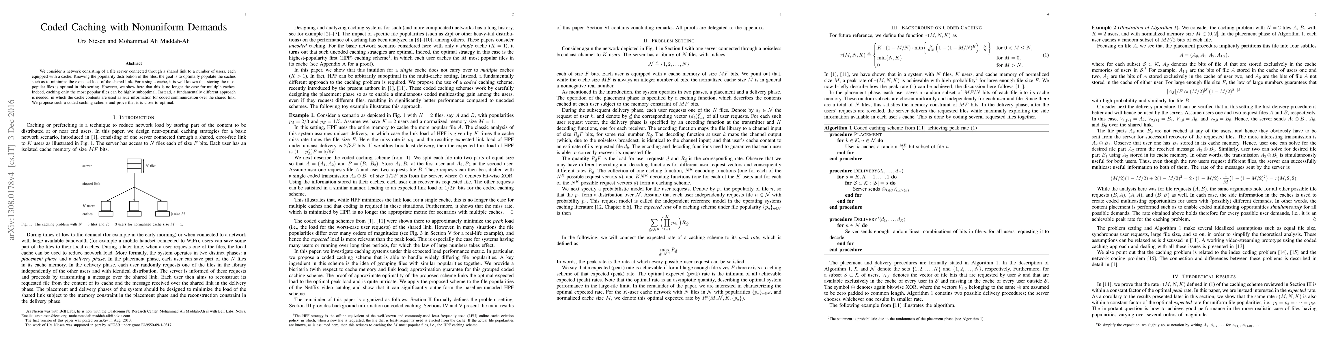 This research demonstrates the benefits of coding for caching systems with non-uniform file popularities, showing that coding is necessary for optimal operation with multiple caches, unlike single-cache systems where uncoded caching (HPF) is optimal.