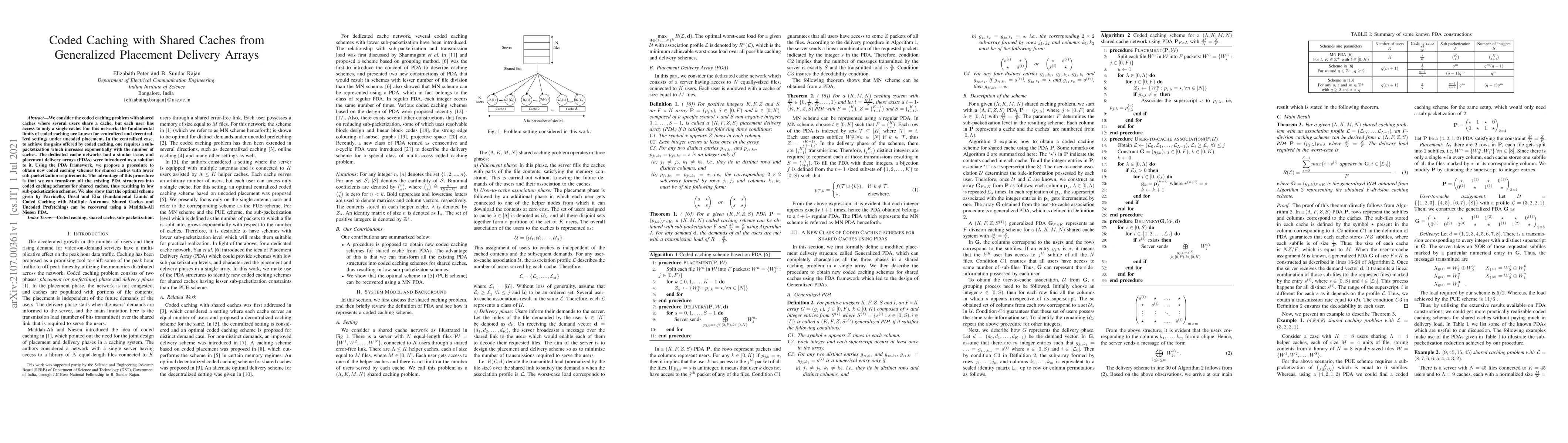 The paper introduces a Generalized Placement Delivery Array (Generalized PDA) to represent coded caching schemes for shared caches in a single array, enabling the derivation of new schemes with lower sub-packetization levels from existing PDA constructions.