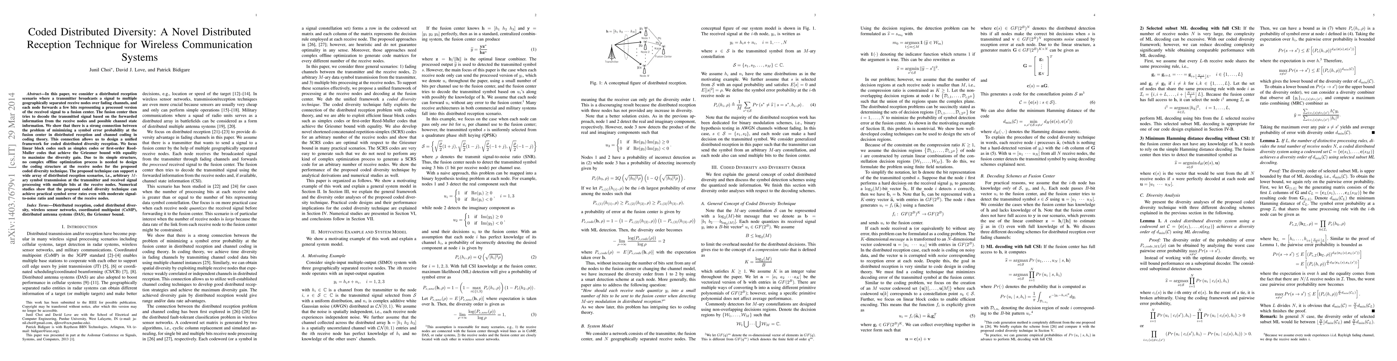 A new technique for distributed wireless communication systems uses coded diversity to improve signal reception and decoding accuracy in multiple geographically separated nodes.