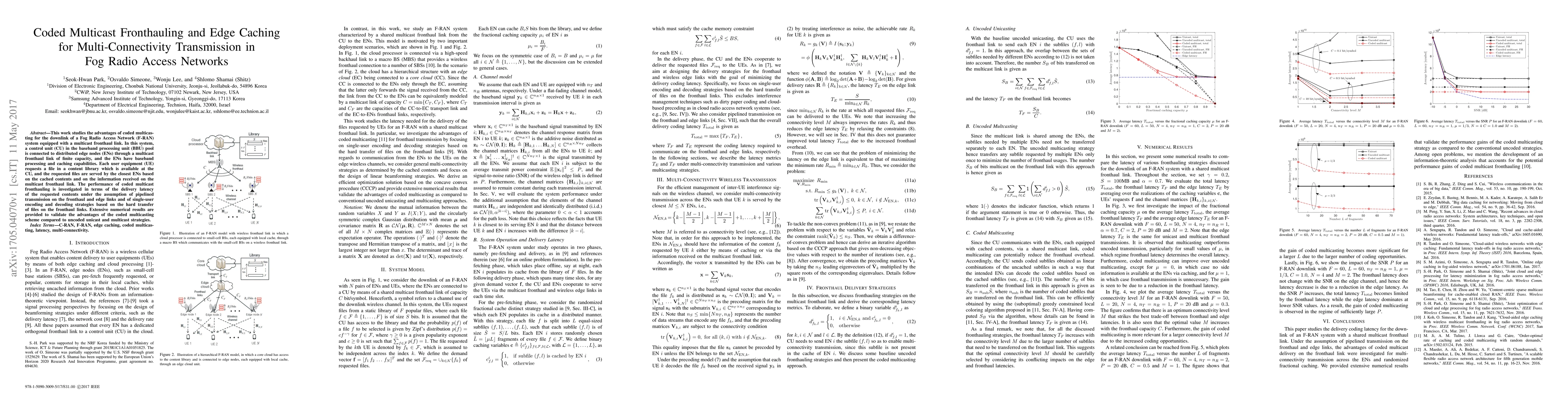 This paper explores coded multicast fronthauling for a Fog Radio Access Network (F-RAN) with multi-connectivity transmission, focusing on reducing delivery latency through efficient content caching and multicast fronthaul links. Numerical results demonstrate the benefits of coded multicast over uncoded unicast and multicast strategies.