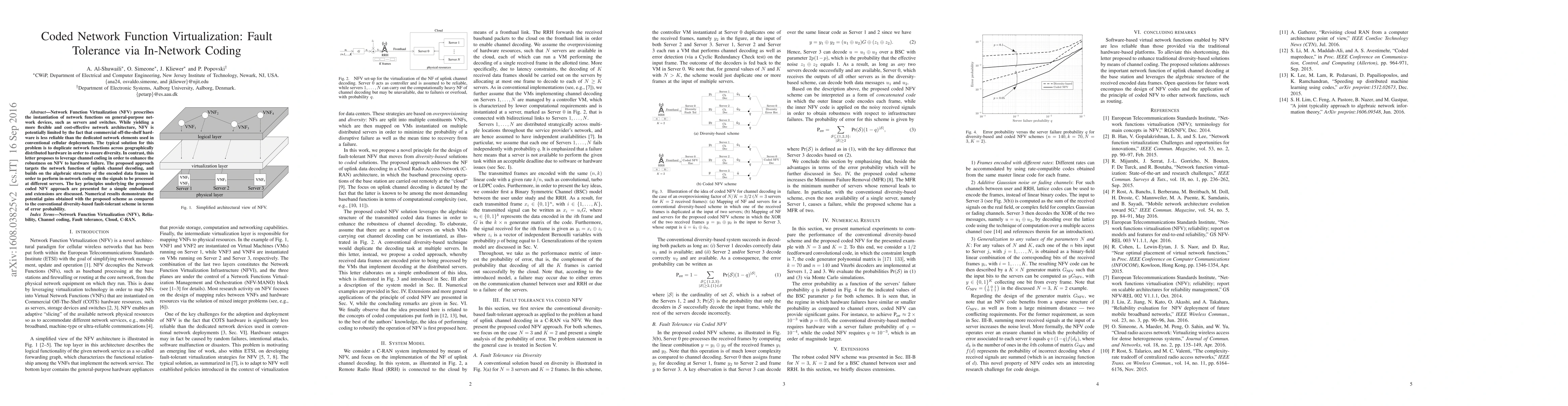 This paper proposes leveraging channel coding within Network Function Virtualization (NFV) to enhance fault tolerance against hardware failures. By using in-network coding on the encoded data frames, the approach aims to improve robustness without the need for geographically distributed hardware redundancy, demonstrating potential gains in error probability compared to traditional diversity-based methods.