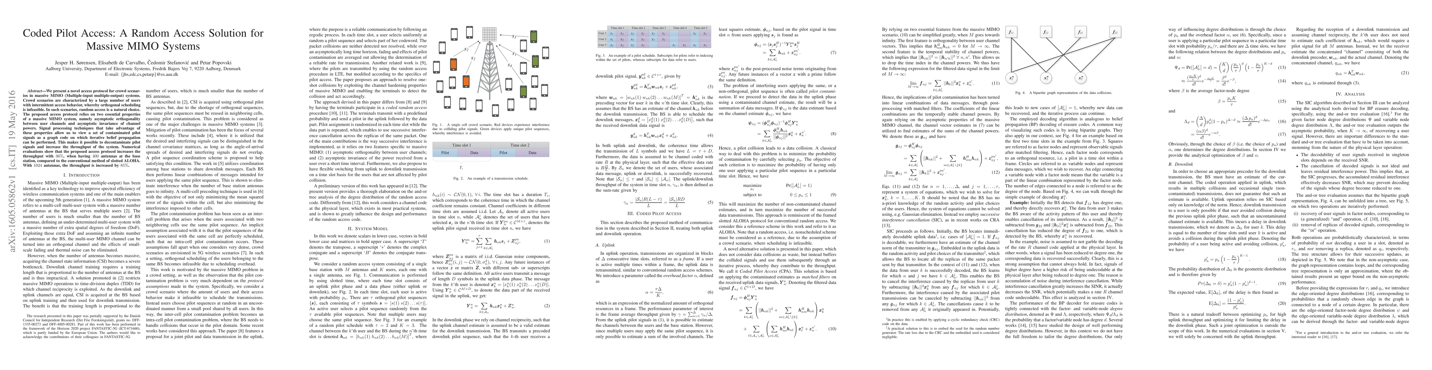 We present a novel access protocol for crowd scenarios in massive MIMO (Multiple-input multiple-output) systems. Crowd scenarios are characterized by a large number of users with intermittent access behavior, whereby orthogonal scheduling is infeasible. In such scenarios, random access is a natural choice. The proposed access protocol relies on two essential properties of a massive MIMO system, namely asymptotic orthogonality between user channels and asymptotic invariance of channel powers. Signal processing techniques that take advantage of these properties allow us to view a set of contaminated pilot signals as a graph code on which iterative belief propagation can be performed. This makes it possible to decontaminate pilot signals and increase the throughput of the system. Numerical evaluations show that the proposed access protocol increases the throughput with 36%, when having 400 antennas at the base station, compared to the conventional method of slotted ALOHA. With 1024 antennas, the throughput is increased by 85%.