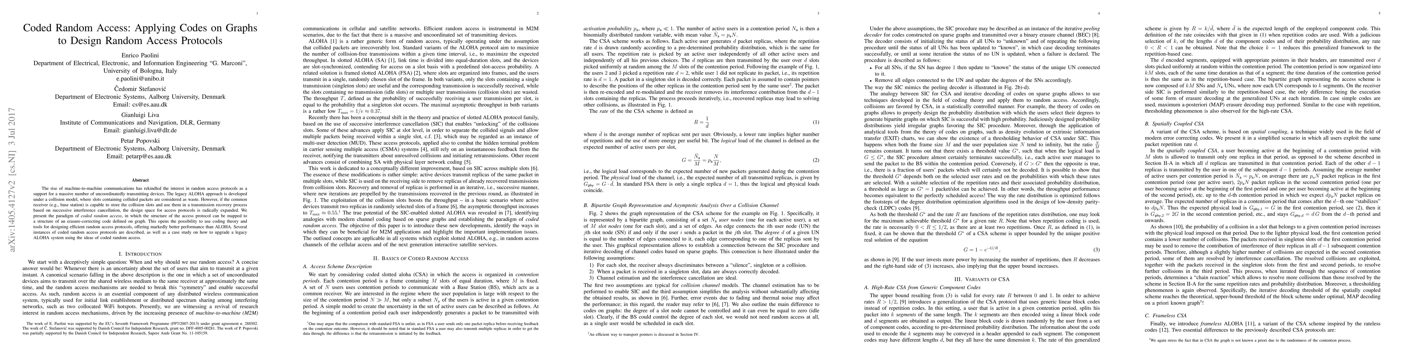 This paper proposes coded random access protocols, leveraging graph-based erasure-correcting codes to enhance machine-to-machine communication efficiency by recovering collided packets through successive interference cancellation, offering superior performance over traditional ALOHA methods. A case study demonstrates how legacy ALOHA systems can be upgraded using these advanced techniques.