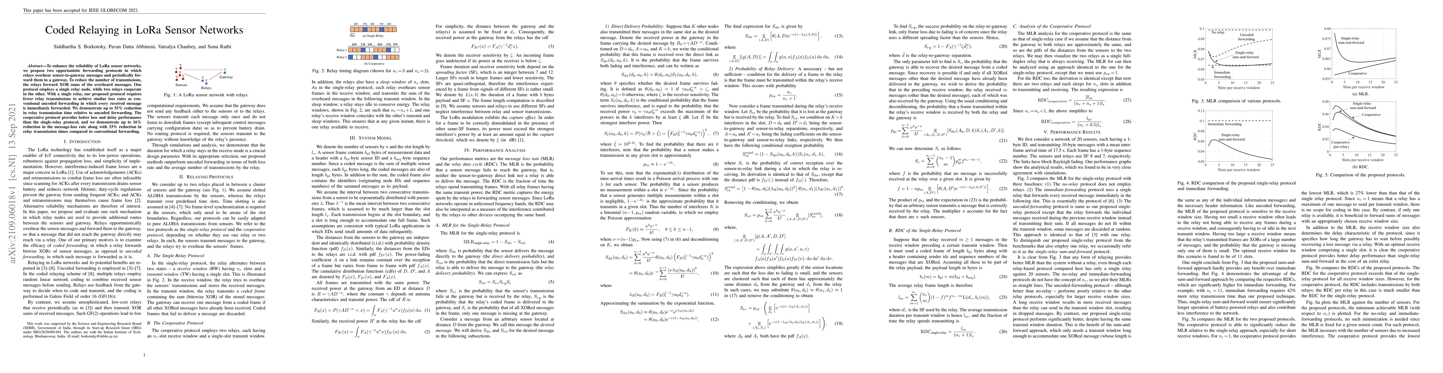 This paper proposes coded relaying protocols for LoRa sensor networks to enhance reliability by reducing transmission times. The single-relay protocol achieves up to 55% reduction in relay transmission time, while the cooperative two-relay protocol offers up to 16% reduction in message-loss rate and 33% reduction in transmission times compared to conventional methods.